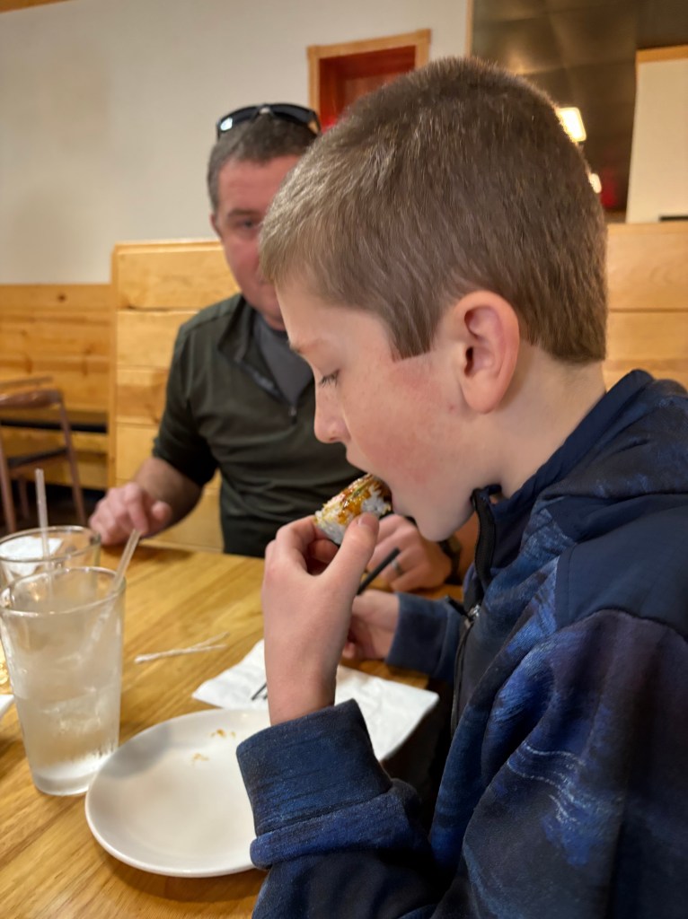 Other highlights since I last posted… We spent New Year’s Eve playing games with family in Vancouver. We enjoyed a meal with Nana and Papa. We showed them the Christmas musical and shared a few of our new Christmas games with them. We celebrated my sister’s birthday with sushi! Owen was brave and tried it for the first time. He didn’t like it, but I’m proud he gave it a shot. The Scott family wasn’t into the sushi scene, so we all found Chinese food options while my parents and sister enjoyed their special birthday treat.