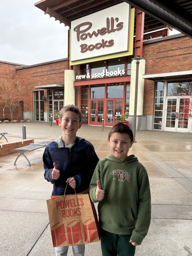 We enjoyed a down day on President’s Day and went out to Chinese food on Lunar New Year. We caught up with friends at their house. The moms chatted about life while the kids played laser tag and board games. The boys are loving piano lessons right now and look forward to their new video session each week. It’s fun to see them tackle a new way of playing the piano. I got my haircut. My book club did a field trip to Goodwill to browse for books! We had a family shopping day in Portland to look at books for me, a video game for Owen, and Pokémon cards for Graham. Jeremy was hoping to find a new puzzle, but nothing sparked his fancy. We’ll keep looking!