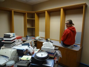 In the process of Vicki leaving, our staff has started a game of musical offices. Jeremy’s mom, Debbie, moved into Vicki’s office, which meant that her office across the hall from Jeremy and I’s office was empty. The decision was made that this office would be a great option to house our all curriculum in one secure location. Since I’m the closest now to the curriculum at Bethel Church, I have moved into the office with the curriculum.
