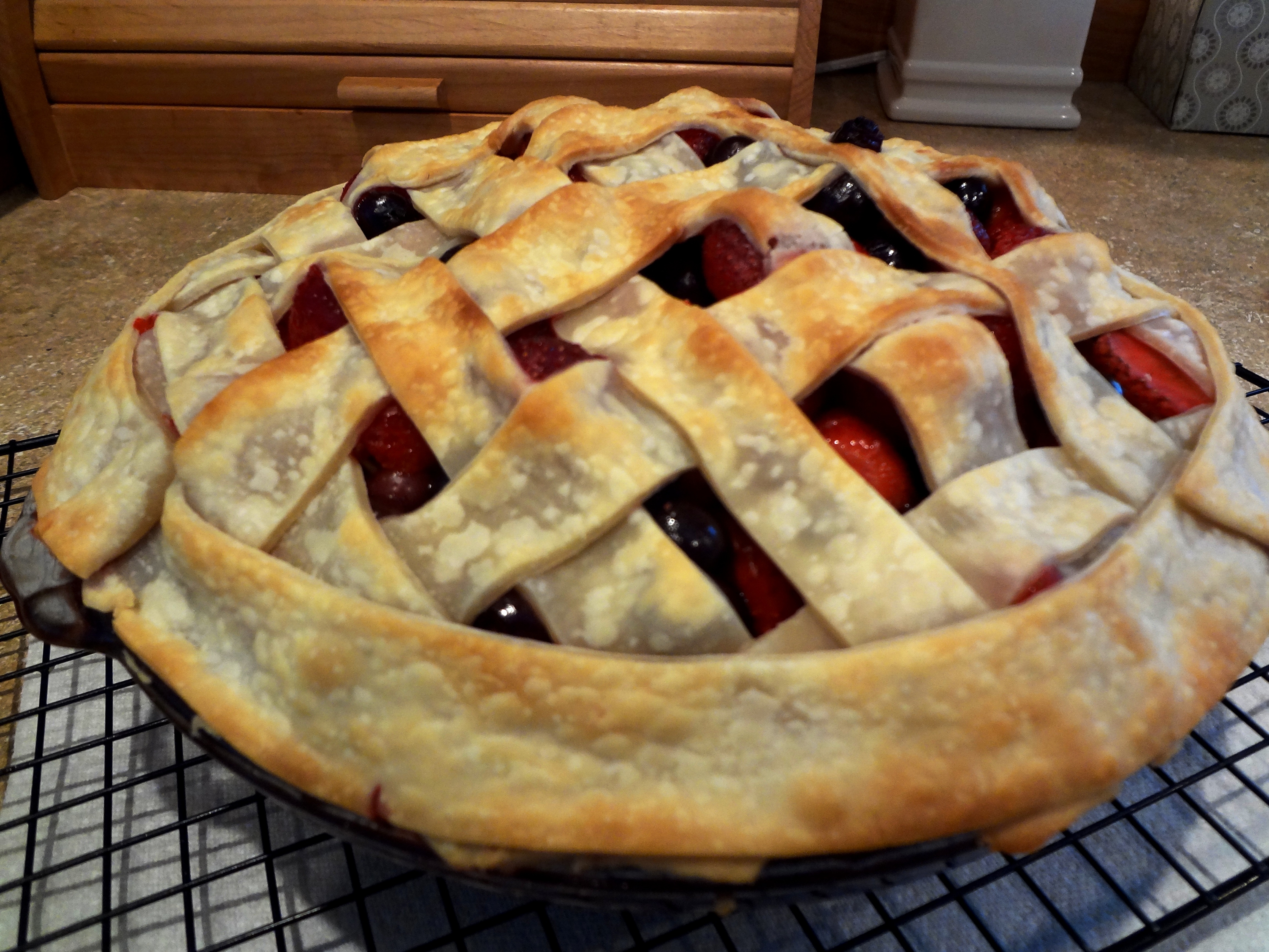 My first pie cake really was a flop. Yes, it tasted good, but it didn’t firm up right. I’m honestly surprised my class of 5th/6th grade girls ate it without questioning or objecting! They are super nice. However, after the first attempt, I just couldn’t get improvements out of my head. I kept thinking about all the things I could do different. After much brainstorming, I settled on a red, white and blue theme for the upcoming 4th of July holiday. Instead of just strawberries, I added blueberries to the filling mix. I also used white cake mix instead of yellow for a more pure white color. My original plan was going to be strawberries with lemon cake. My sister than suggested blueberries with lemon cake. I found a way to do it all. I didn’t want the color of lemon cake, but I wanted the flavor. I added lemon extract to the white cake mix so I could get the flavor without the color. The cake turned out super tasty (I made a little cake with the leftover batter). After letting the pie firm up a bit, I plan on diving into it! I learned a lot from my mistakes and I’m glad that I tried it again! If at first you don’t succeed, try try again!