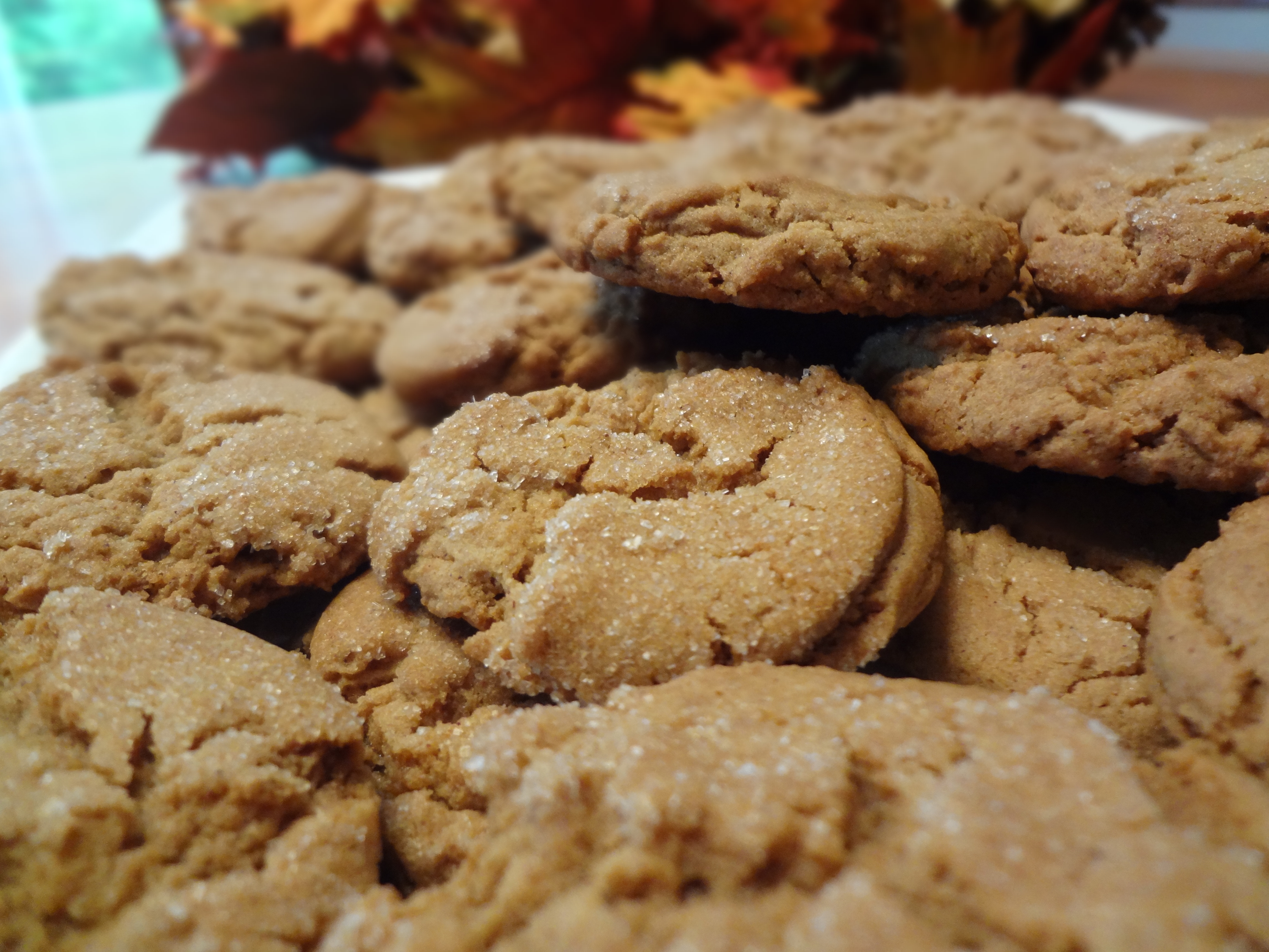 Friday came and I started to think about how we don’t really have much food around the house. I decided I would make pumpkin muffins as a breakfast food to have on hand for company this weekend. I also decided to make molasses cookies since Jeremy has been craving them recently and I thought they would make good snack food to have around the house. Not to mention that Jeremy just made a TON of salsa and we have some chips, so we should be good now on the snack food front.