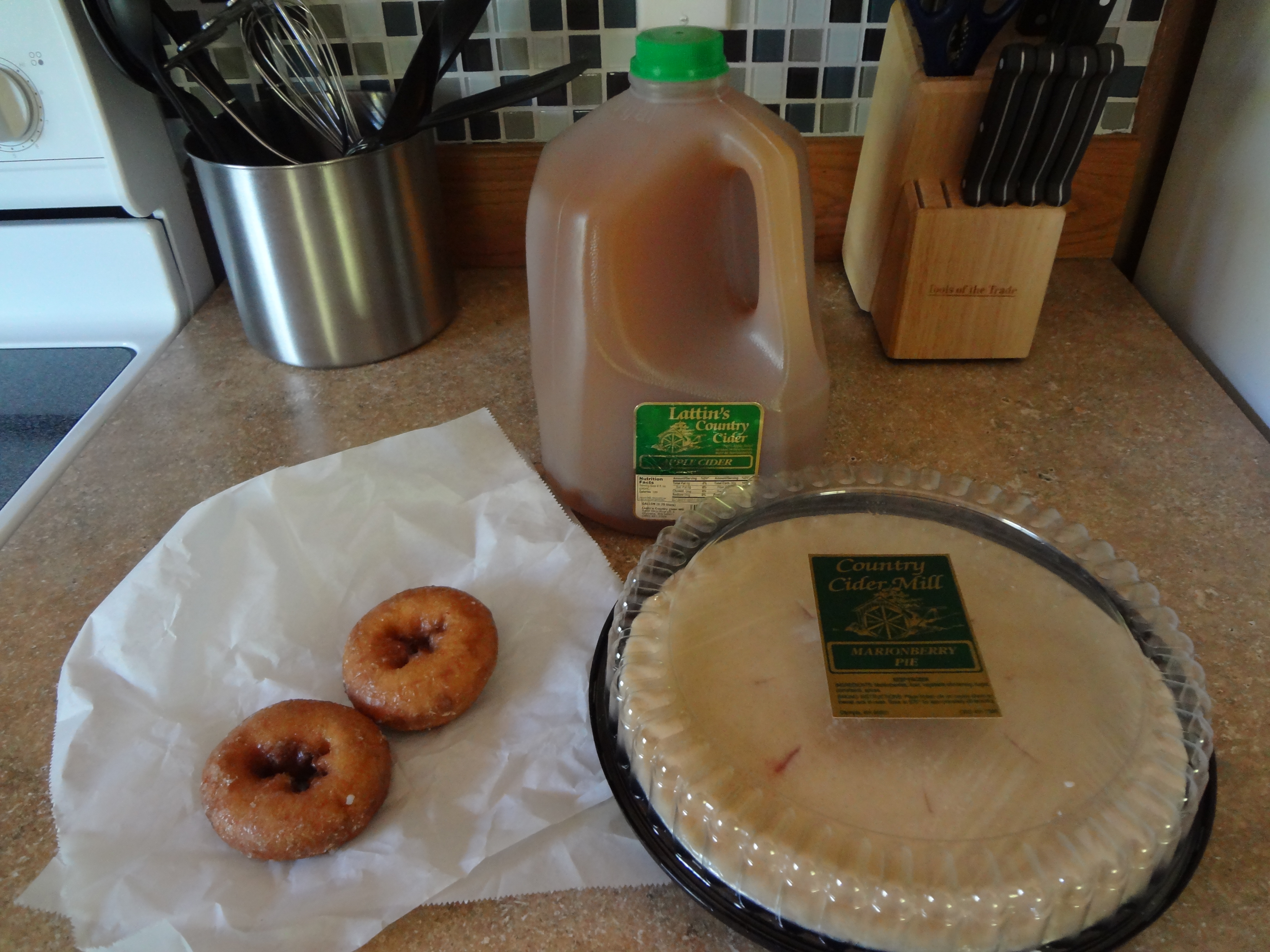 On Saturday, we went to a local cider mill for their annual apple festival. Going on Saturday meant that we got still warm apple fritter which they only make on the weekends! Oh my goodness! It made the $3 for parking worth it (I guess I should note that I didn’t pay for parking… or the doughnut for that matter… but I would have to get another one)! We also bought an amazing marionberry pie, a gallon of cider and two cake doughnuts – one pumpkin and one apple cider to split and sample. If it was a contest – the pumpkin doughnut won… In case you were wondering! So the visit to the cider mill for me was really all about the food. I will admit that I felt awkward because it