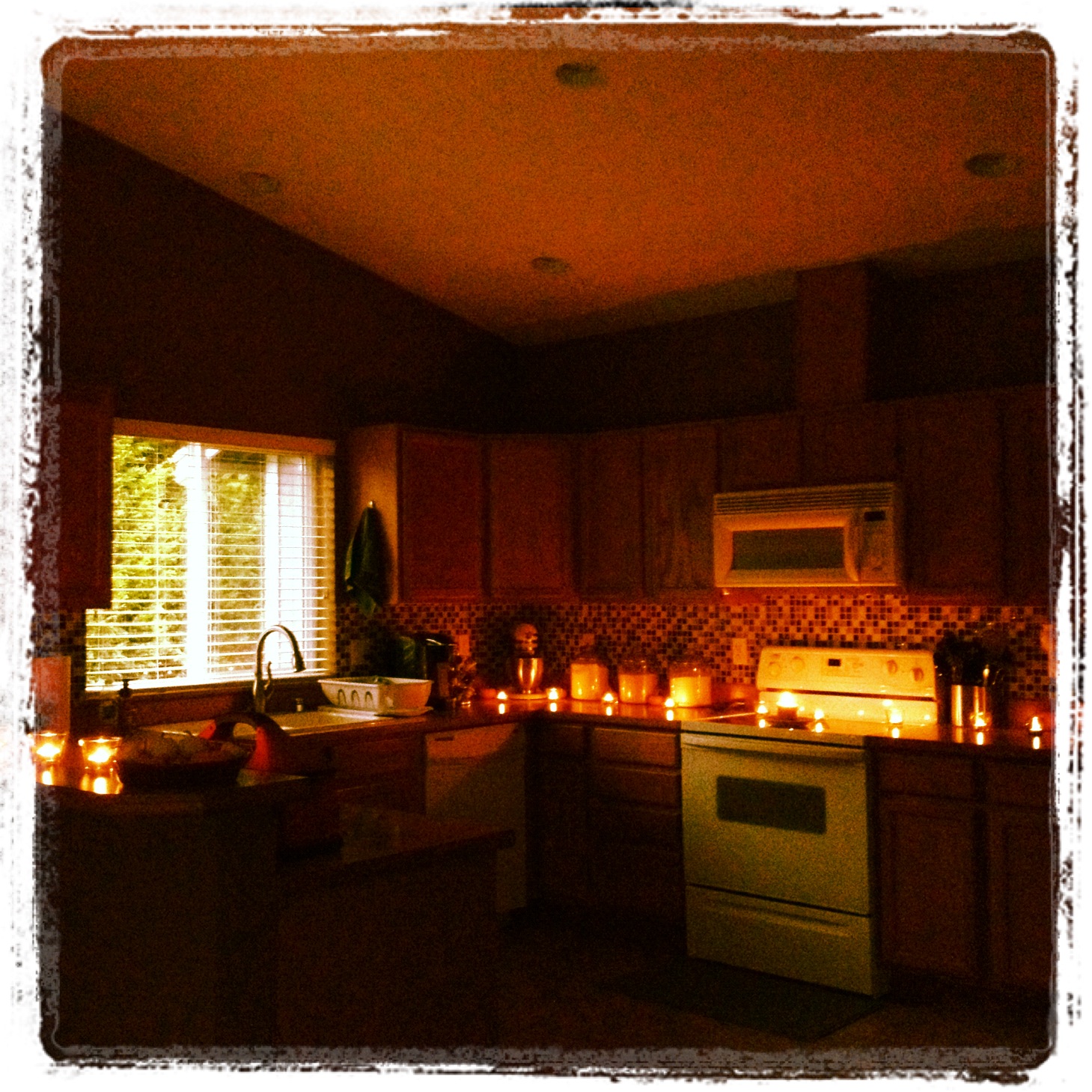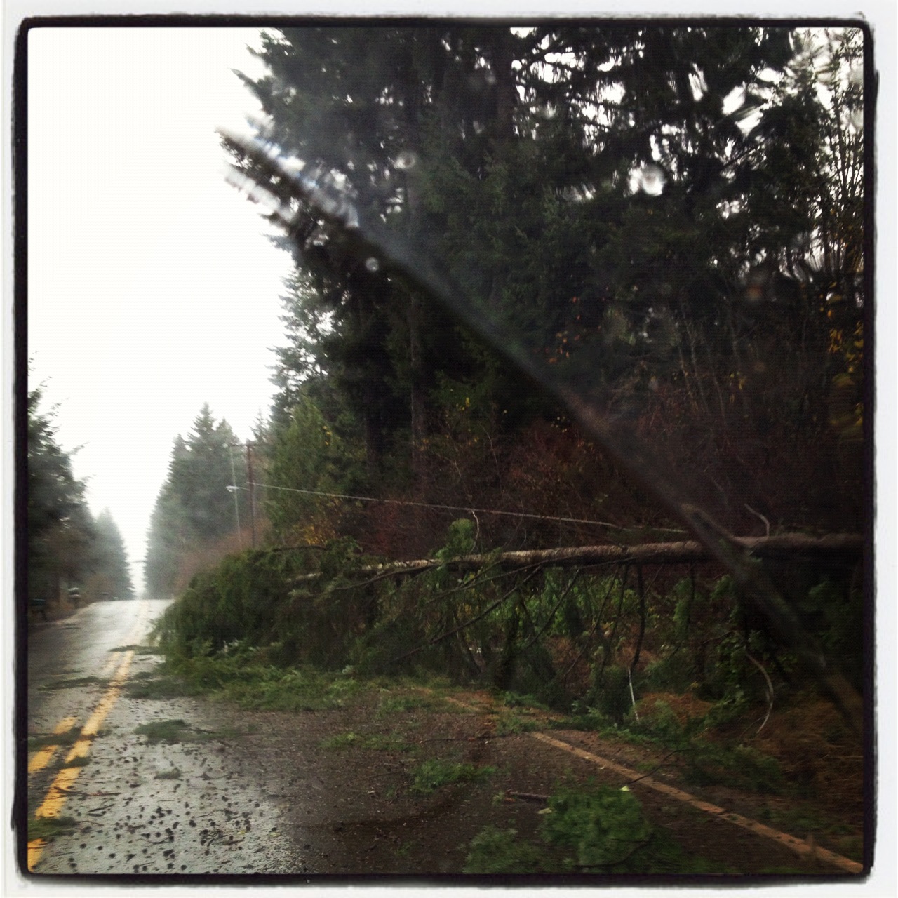 It’s been a crazy weather day here in Western Washington. Even has I type this another heavy shower is pounding my roof and making its presence known. Last night the wind and the rain started to pick up. We could hear the gust hitting the house and this morning it was more of the same. As I was getting ready the power kept flickering and all I could think is “Today is a good day for a power outage.” I headed off to work leaving my sick hubby at home to rest. The power at the church went down for about 3 seconds before starting back up. It flickered a couple more times but never down. At home, it was a completely different story. Jeremy said that he lost power around 10:00am and we didn’t get it back on until about 6:00pm. I learned on my drive home that a tree had fallen down on the road and had taken the power lines down with it. The roads always look like a war zone when gets this blustery, but this is the first time I’ve driven by a downed tree on my own. I won’t lie, my heart rate went up and I started repeating “oh my” every few seconds. What a wet and wild day! Because of the amount of rain that has fallen, local rivers are forecasted to hit flood stage. Nothing major, but it does make travel unsafe. We had to cancel a kid’s choir practice tonight and our regular Monday night activities. With no power and a tree down on the road, I decided to cancel my dinner plans. I didn’t think it was a smart idea to be driving in the dark on a unpredictable night like this. When I got home, I read a little. My current book has small font and with all the dark clouds in the area, it was too dim to really read for a long time. Jeremy walked out to get the mail when the rain lighten a bit and came back in with the newest Food Network Magazine. I proceeded to pour over that until the light got too dim. We ordered an early dinner of pizza because it was warm, started a fire and lit all the tealights. Now that the power is on, I have a pie baking in the oven and quite a few lights on! Hurray! Wow, what a day! Here’s hoping tomorrow is less eventful!