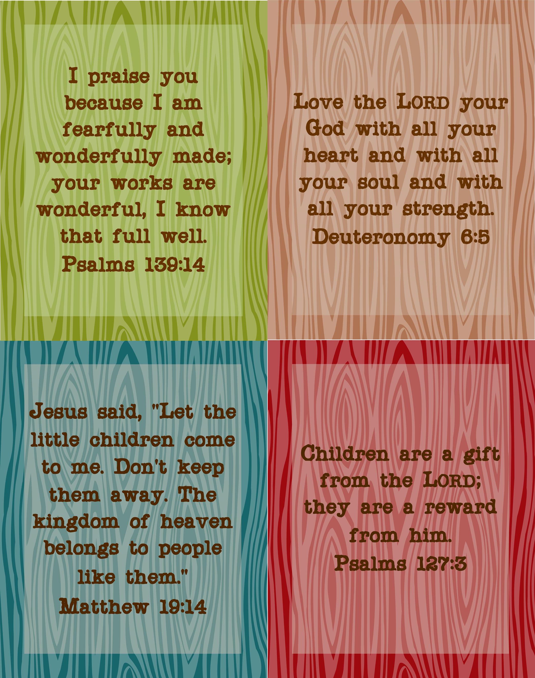 My second attempt look me down a little more professional route. I went back to Esty and downloaded a wood grain scrapbook paper set. I do believe the download had about 24 colors to choose from. Jeremy really like the wood grain theme because it fit the room, but it wasn’t too busy. I set to work recreating verses on this wood grain pattern. I then had the images printed at Shutterfly on 11 x 14 matte paper. I also ordered some 11 x 14 frames online and they should arrive soon.