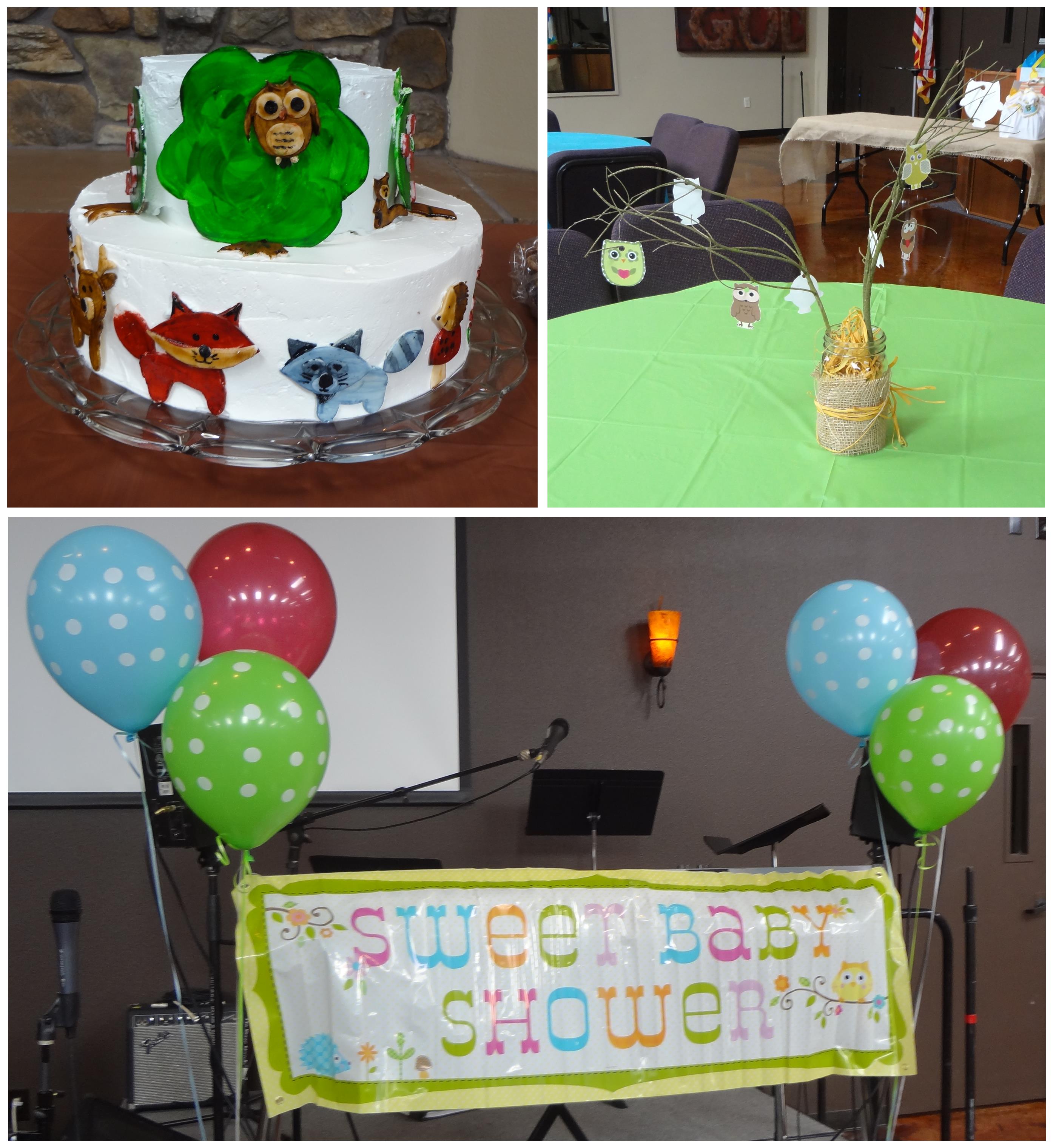 Like I mentioned before, each shower has a different theme and flow based on the hostesses. This shower had a woodland animal theme that was inspired by our nursery decor. The tables had mason jars with twigs sticking out of them and owls on the twigs. It was super cute. Apparently, it was an idea Danielle found off of Pinterest. My wonderful friend, Julie, made a cake that was covered in trees and forest animals! It was almost too cute to eat. I felt bad cutting into it! Vicki, did a devotional time that was so sweet. I’ve been a little nervous about raising a boy because I know so little about them, but Vicki’s talk was so inspirational that it took the edge of my nerves. I am reminded that I’m surrounded by many ladies that have successfully raised boys and I am sure they will be a wealth of support and encouragement to me when I feel clueless and unsure of myself.