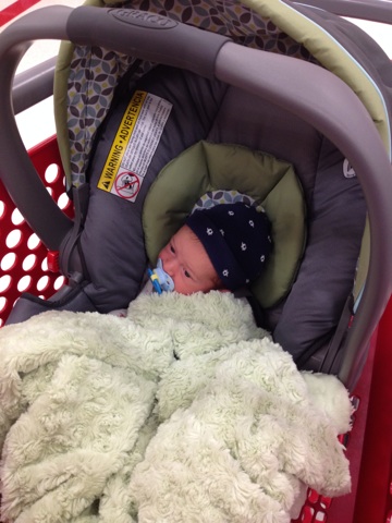 In the long list of other first for the week, Owen went to Starbucks yesterday for Red Cup Day! Red Cup Day is a holiday in my book and it’s the official beginning of the holiday season for me. I love getting a peppermint hot chocolate in a festive red cup. It just does something for me! Plus, I get to celebrate with people I love! It’s a win-win! The morning started off with a red cup with my friend, Jeannie, and then the fun continued later that afternoon with a red cup with my mom and sister. Of course, Owen is pretty attached these days so he was in tow for both coffee dates. I’m starting him off right! Also, this was a first for me – yesterday was the first time I took Owen out by myself. It was also my first time driving in a month. Thanks to bed rest and having a baby, I didn’t drive the entire month of October! It was a big day all around! And it only got better!