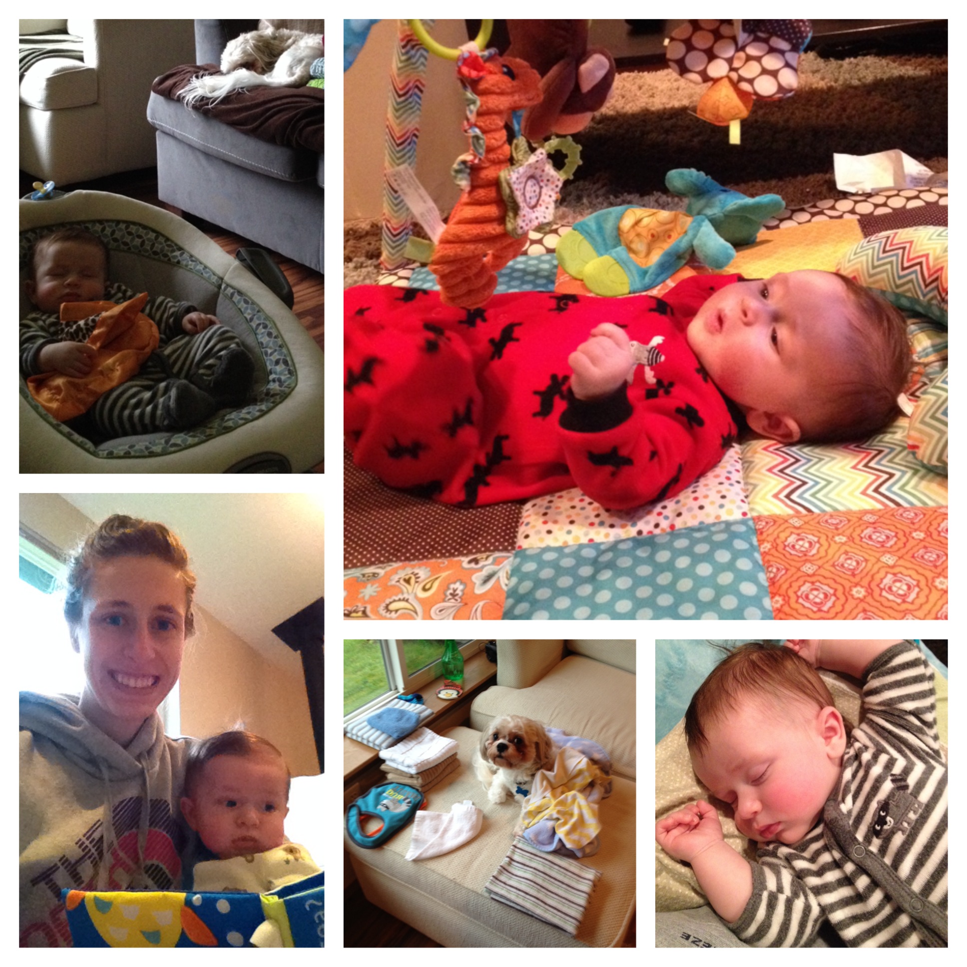 It’s hard to believe it but our little guy is three months old today. That’s a quarter of his first year. It’s hard to believe how many changes we’ve seen in three months. Owen now likes to sit up with help. He loves to be held looking out and being bounced. Just recently his play mat has become fun because he can stare at himself in the mirror that is on it. He is still a super sleeper and we are grateful for the 8-11 hours of sleep he gets every night. Because he is such a good night time sleeper, Owen is more of a cat napper during the day. He usually only sleeps for about a half hour at time during the day. During these naps, I make mad dashes around the house, trying to take care of my own personal do list and chores. Now that I’m back to work, I have a daily commitments that take me out of the house 5 out of 7 days of the week. The busy pace of my life is back in full swing and Owen is along for the ride. For the most part, Owen is an easy tag-a-long, but he has his moments. This weekend was one of them when he was just fussy and hungry all the time. It made being out and about a bit hard. Thankfully most people are understanding. Owen is weighing in about 13.6lbs of last night and let me tell you, my arms can tell that he is putting on weight. All that bouncing really catches up with me! Parenting has been such a mixed bag for me. There are moments and even days where I think it’s a pretty easy gig (and with one kid I know it really is), but then there are moments and days that are harder than others. It’s difficult when Owen is in a mood where he just wants to be held and bounced and I want my arms back. However, I am trying not to race through these moments. Even if fussiness happens, he will only be this size for so long. Someday he will be too big to be in my arms, so I will enjoy this season while I am in it. Ups and downs!