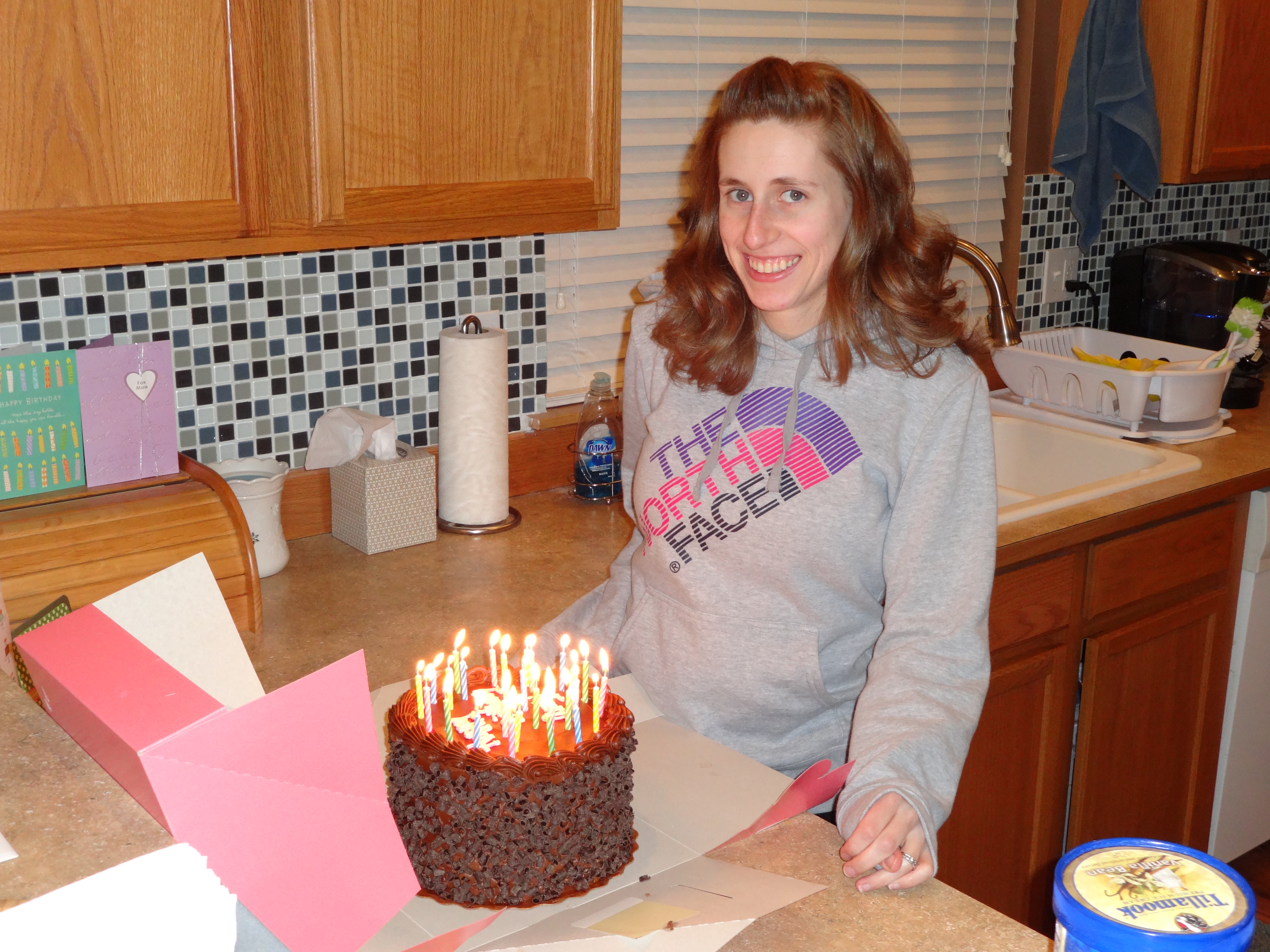 After game time was cake and cards. My traditional cake is a yummy chocolate cake from Safeway and it did not disappoint. 28 candles sure does create a lot of smoke! Overall it was a great day filled with amazing food and family time. This birthday was a lot more fun for me than last year. I was so bummed last year. Life wasn’t turning out like I had hoped. 26 was a rough year and I wasn’t looking forward to 27. However, things have turned around in a lot of ways. It was fun to celebrate this birthday with Owen around. Even though he can be a fussy nut at inopportune times, he does bring a lot of joy to my life and I think his little life really made the difference for me this year. I have a feeling that 28 is going to be great.