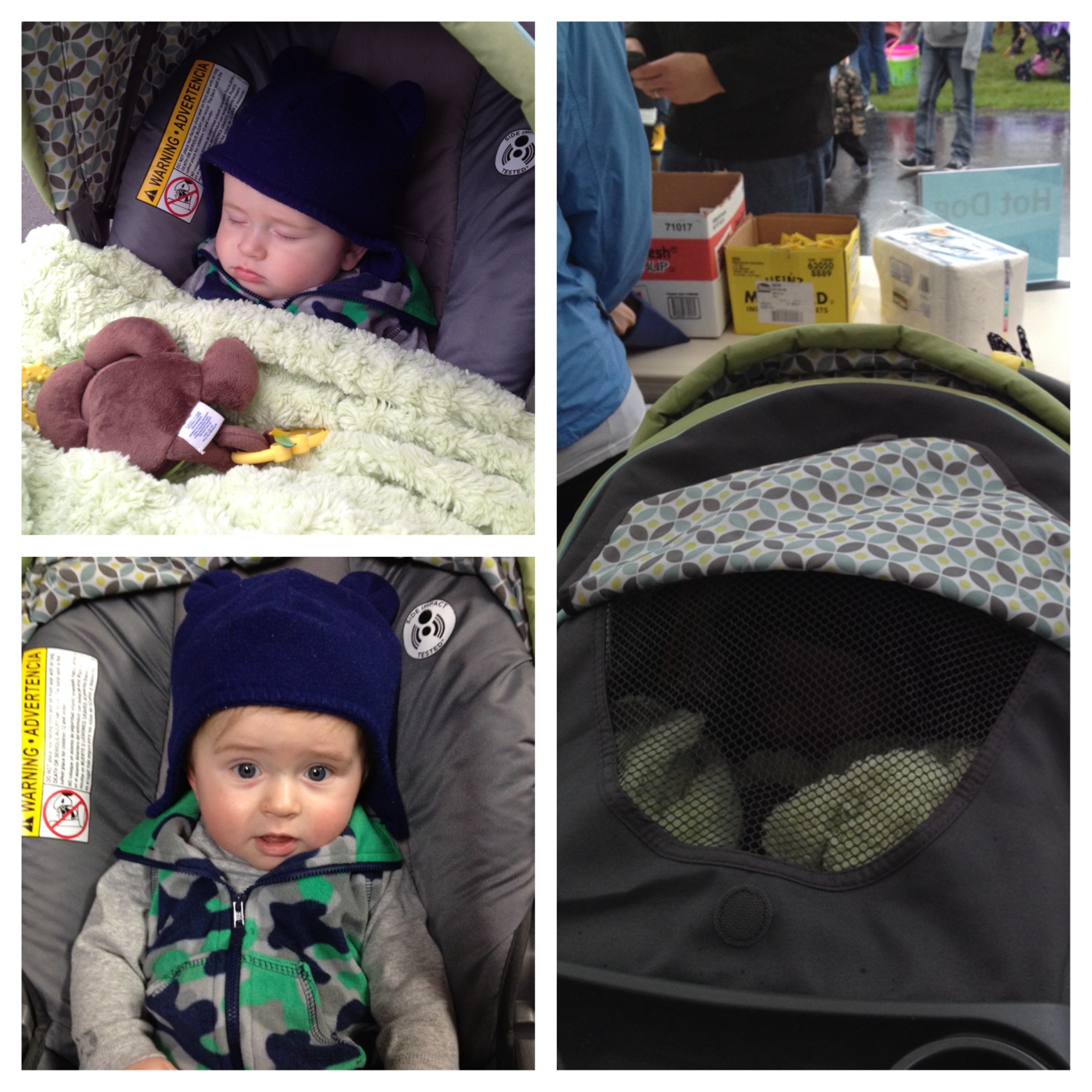 Easter weekend has come and gone and we survived! Hurray! Easter weekend is always a massive endeavor and you add a baby to the mix and things get a little nutty. Owen decided to be anti-nap this weekend which led to him having a sparkling personality most of the time.  There were moments where I was on the brink of insanity. I had joked about checking myself into the locked psych ward at the hospital to get some rest. Thankfully that wasn’t necessary, but I was close. Thursday and Friday were big prep days for Easter Eggstravaganza. On Friday, I had to put an SOS call out to my mom. I was working on filling prize eggs at home and Owen didn’t like the fact that I was multitasking. Thankfully my mom came to the rescue and alternated between filling eggs with me and keeping Owen occupied. Saturday was the big egg hunt day. The weather was not very nice. There was much rain and wind. However, we live in Washington and no one seemed phased by the wild weather. We had record attendance which was quite mind blowing. Owen and I made it to the first egg hunt. He ended up sleeping through his egg hunt. Since it was pouring down rain, I didn’t really plan on setting him in his field just to sit in a puddle. Next year he will be mobile and able to participate. This year Easter Eggstravaganza was a spectators sport for Owen. My family worked at the hot dog booth so Owen and I crowded under their pop-up canopy to take in the sights from a somewhat dry location. After the first hunt, we found Jeremy to say hi and greet the volunteers. After that it was off to home for a supposed nap that never happened. Saturday night was our evening Easter gathering at church. Sunday morning were two more Easter gatherings and two family gatherings. That about sums up the weekend. Busy, busy. We loved seeing our families and spending some time catching up with them.