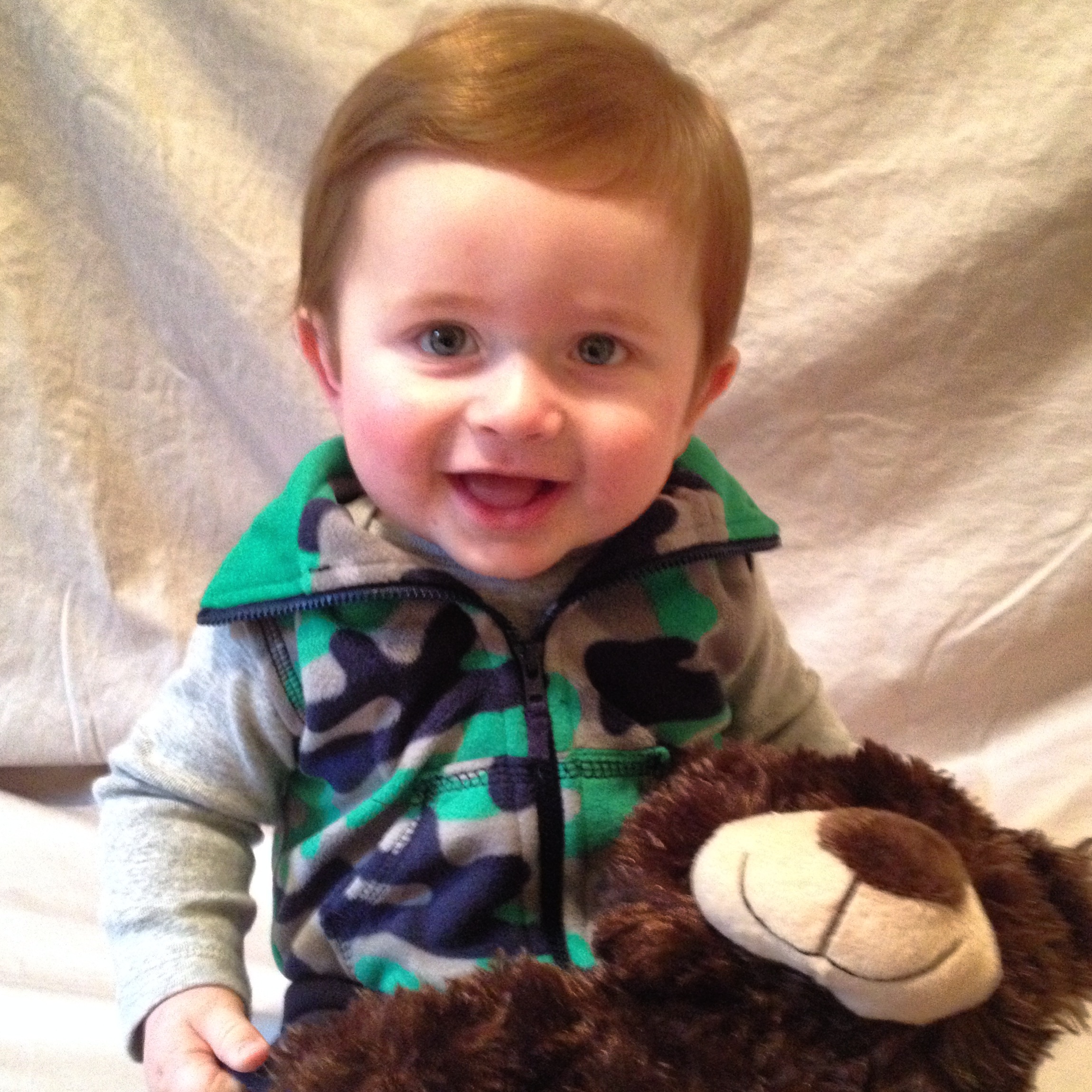I’ve been wracking my brain trying to think of things to share in this 7 month update, but there isn’t too much new to report. Owen loves to “walk” (with his hands being held, of course). He is quite the explorer and wants to touch everything he can get his hands on. He is not crawling yet so our house is still safe. Owen also continues to be a massive talker. This baby loves to chat. It’s fun because I can say some baby talk sounds to him and he’ll respond and then pause. I’ll talk and then he’ll talk. We’re having conversations, but I have no clue what we’re talking about. Owen and Toby have spent more time being aware of each other. Owen will scream at Toby and Toby will respond by barking at Owen. This interaction gets really loud, really fast. We’ve been trying more food options now that Owen is on to stage 2 baby foods. I will admit that I’m disappointed he didn’t take an instant likely to his meal of mac & cheese. Owen seems to be partial to fruits and orange veggies. So far green veggies have not been met with much success (in this regard, he is more like me). Tonight he tried a meat puree of apples and chicken and ate the whole container. Go Owen! One last thing, we purchased a new baby carrier so now we have a backpack option. Owen and Jeremy put it to good use this week so that way Owen could go do outdoor chores with Jeremy. Our hope is to use it on a beach outing in the near(ish) future.
