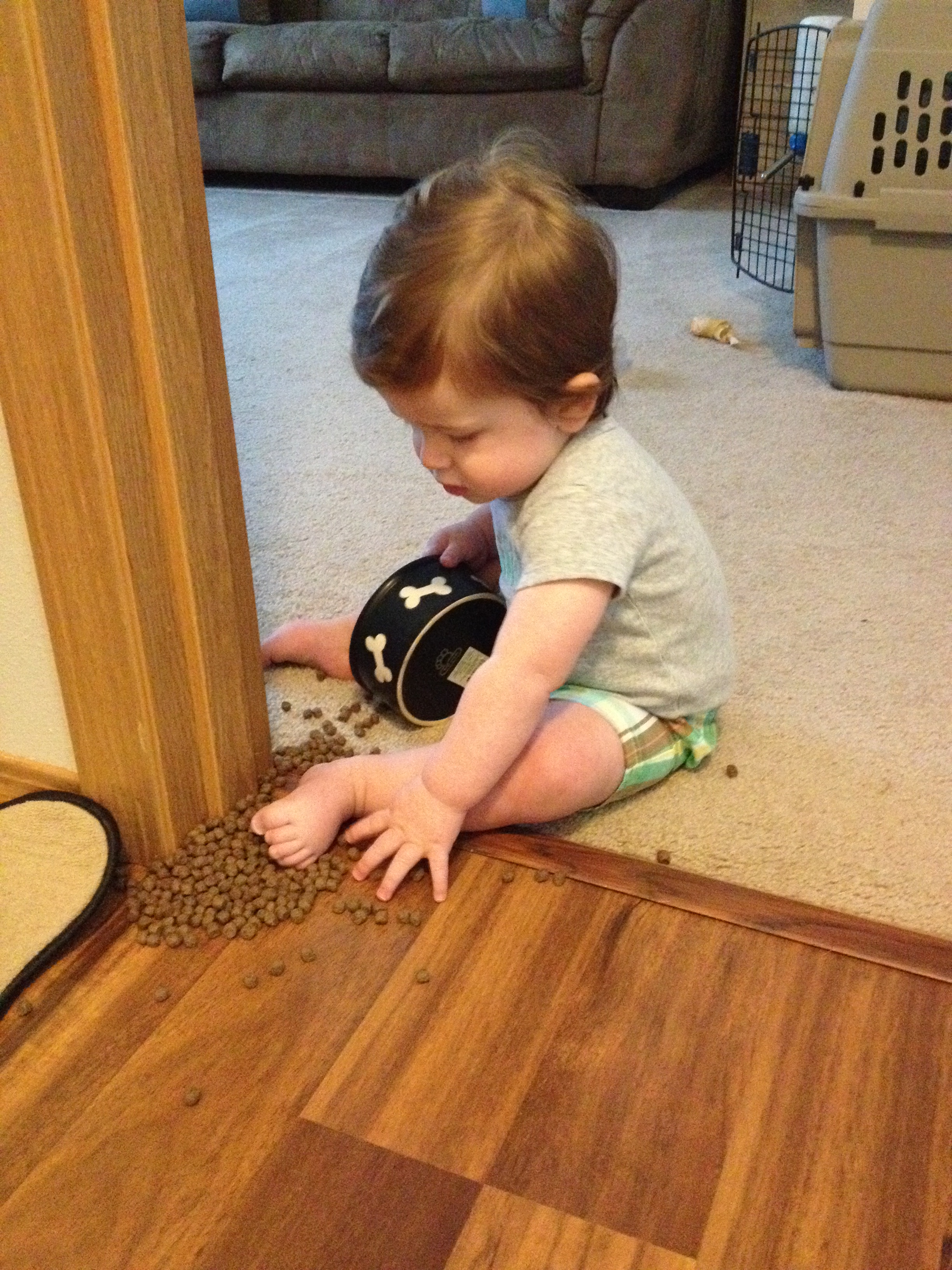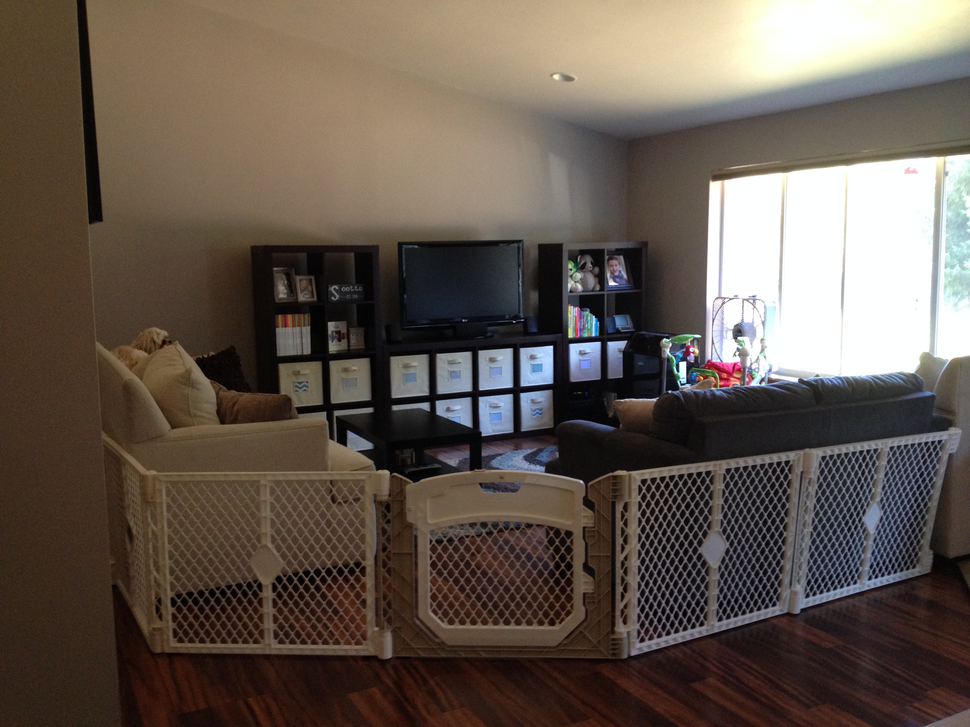 After a few weeks of chasing Owen around the house, Jeremy and I broke down and got a baby containment system. Owen will not happily play with his toys if he knows there is big world to explore. So for now, it’s baby prison for all. On the bright side, if you’re in baby prison with him, Owen doesn’t seem to mind it all that much. Despite the eye sore, it’s working for us. I’m grateful to not be running around the house trying to keep Owen out of trouble.