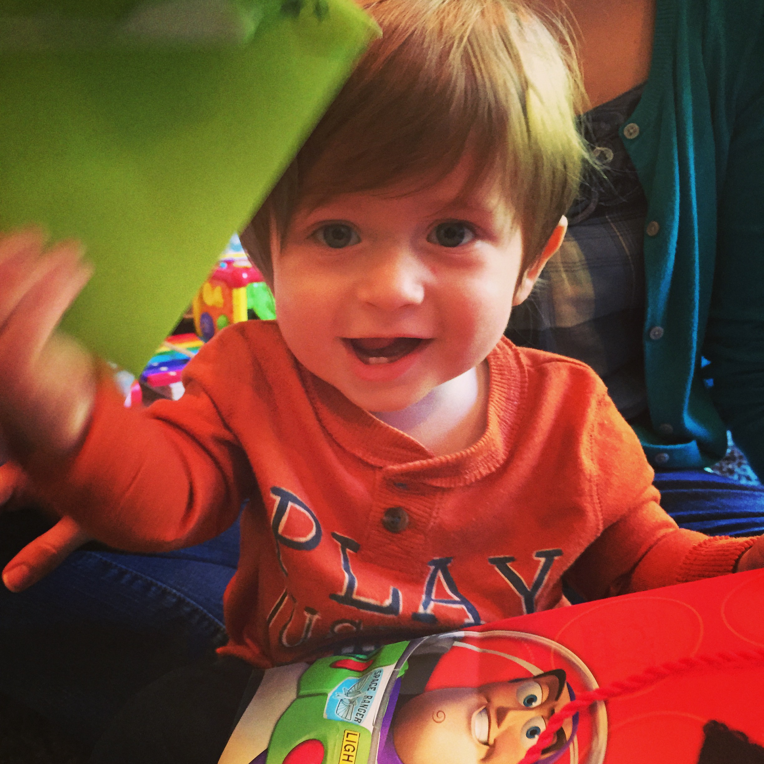 Owen did well at the parties despite the interruption to his nap schedule. He showed off his new walking skills and for the most part seemed interested in opening his presents. It was fun to have him be a part of the process because last Christmas we just opened everything for him. This time when it came time to open gifts he could participate. It was a big weekend, but a fun weekend. We’re now snacking on leftover party goodies and marveling that it has indeed been a year since Owen entered our lives.