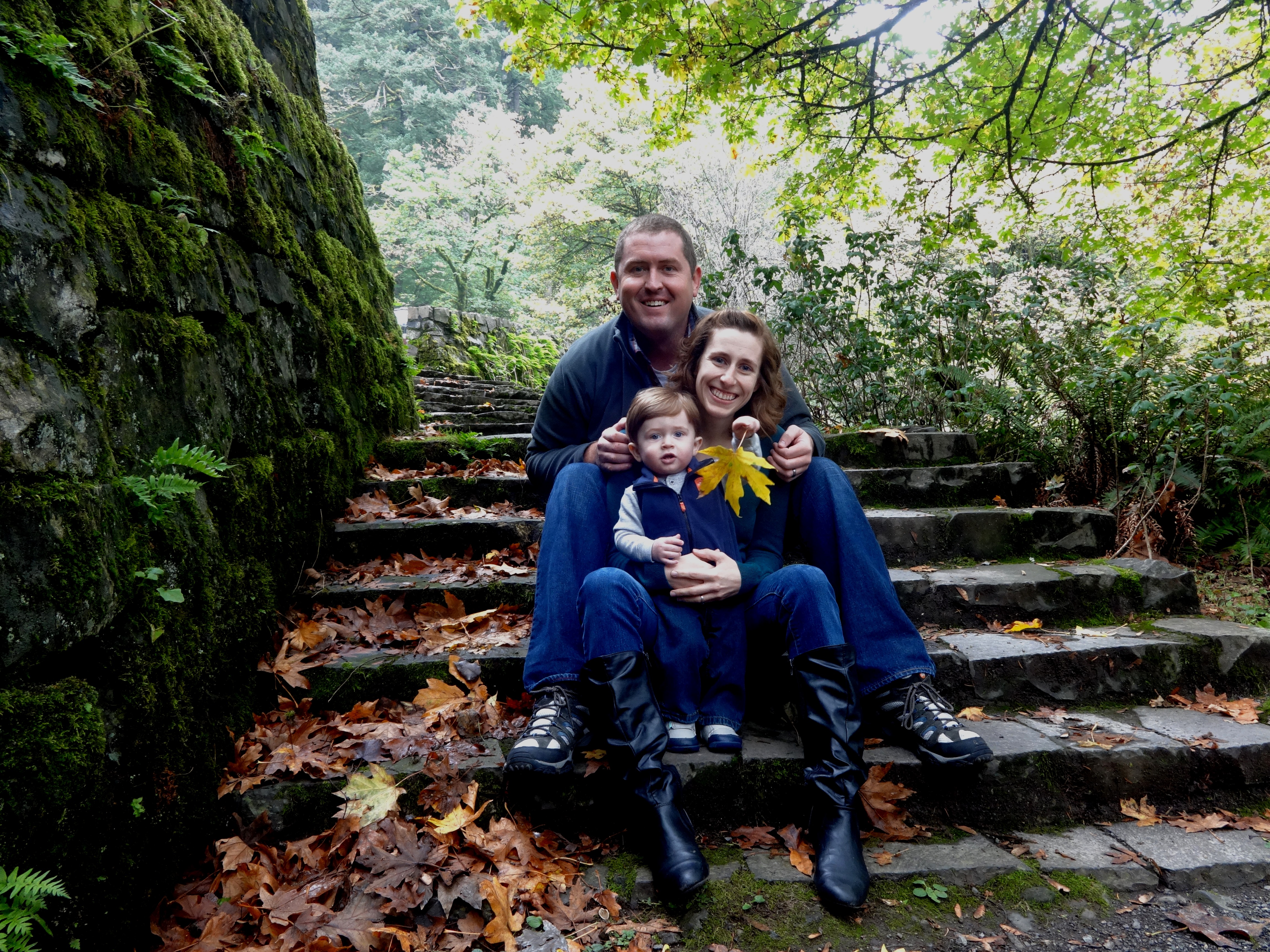 Despite being a bit under the weather, we had a short window of opportunity to head to Portland and visit the Historic Waterfall Highway on the Columbia Gorge. We almost made it down last year, but Owen was a newborn and things just didn’t pan out the way we had hoped. Because it had been a few years since our last visit, we were highly motivated to make it work this year. I knew going into the trip that I wasn’t feeling good and that photographing a one year old is tricky business. I had to give myself a pep talk. There was likely to be no good photos in the bunch. I had to accept that and not get upset if nothing Christmas card worthy happened. Going into with low expectations made for a better trip. There was a short window for photo taking before the rain moved in. We made it just in time. I love this historic highway. Jeremy and I have been going together over the last decade and it holds a special place in my heart. I love it at anytime of year, but especially in the fall! Here are a few of the pictures we took today and a flashback to years past!