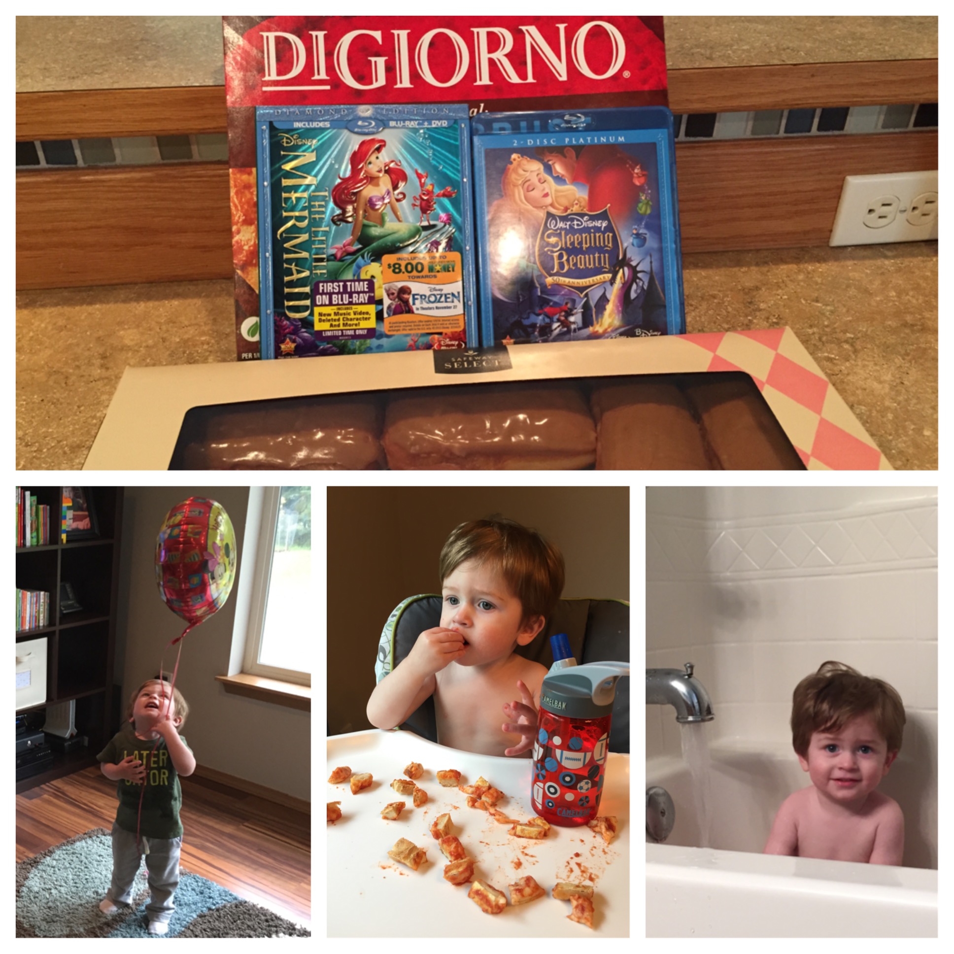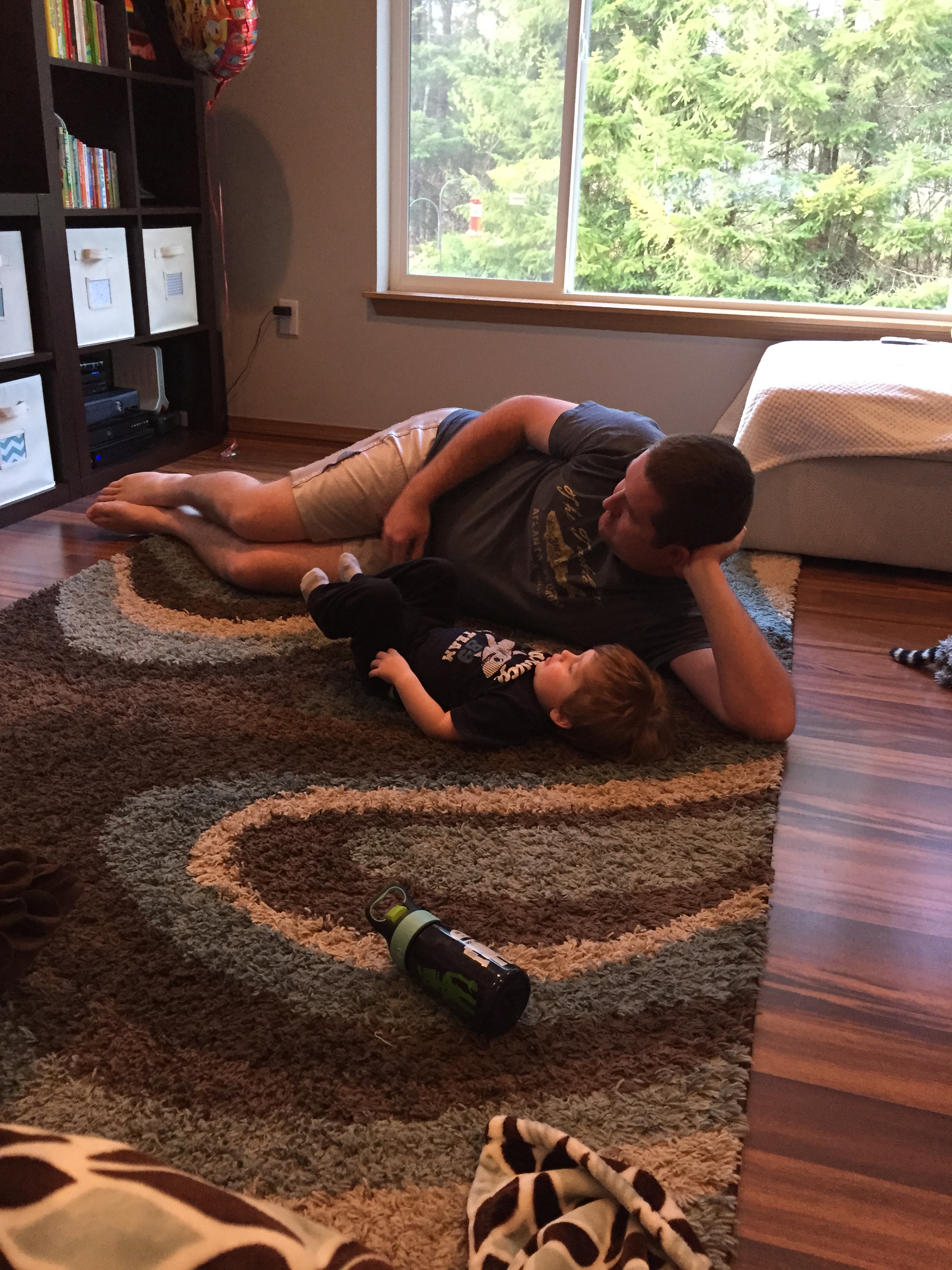 … Mom and Owen will play! This weekend Jeremy had an overnight retreat with some local children’s pastors. Owen and I had two days to fill with fun activities that would distract us from Jeremy’s absence. We really miss the guy when he is not around. I, of course, called in reinforcements, because other people are so much cooler than me to Owen. On Friday, my mom spent the afternoon with us. We went to lunch at Taco Bell, fed ducks in the park, went shopping at Safeway for survival food and Owen got a balloon from Grandma, then it was back to the house to take Toby for a walk. My mom was very helpful in tiring out both Owen and Toby. When my mom left, it was nap time and Owen took a good, long nap (the best kind)! Our evening looked liked frozen pizza, Disney movies, doughnuts for dessert and bath time. Not a bad way to fill a Friday! On Saturday, my sister came over to help Owen and I pass the time. More doughnuts were enjoyed, some Duggars were watched on TV, Owen avoided a nap and basically ran full steam ahead the whole time April was over. After April left, I thought for sure Owen would take an awesome nap since he missed his chance that morning. Owen fell asleep quickly and woke up not even an hour later… He must have known that Jeremy was close to home. Owen woke up and Jeremy got home within minutes of each other. Owen was glad to have his dad home and I was glad to have my hubby back. Owen and I had a good time while Jeremy was away, but life is truly better with him around. We love him!
