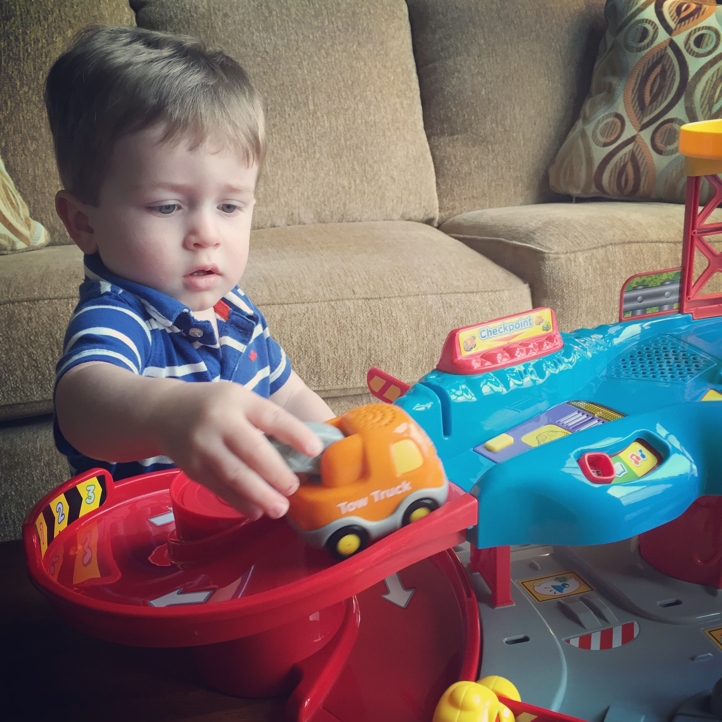 Other than the short meltdown on Sunday, I did great and so did Owen. We both survived the absence of each other just fine. My mom had decorated the guest room with Mickey Mouse stickers to make it feel fun and kid like. They had also purchased some new toys and Owen was totally enthralled with all the goodies at Grandpa & Grandma’s. Monday before we left, I tried to get a picture with my boy, but he was too busy with playing to want to stop and take a picture with me. He was also too interested in the new toys to really care that we were leaving. I guess that is the way you want things to go.