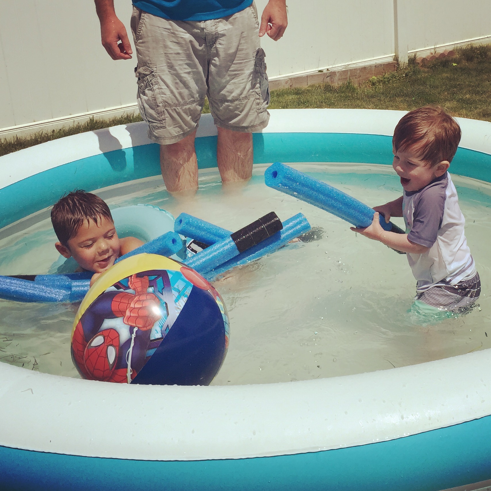 On Saturday, we got up early (that was hard after the late night before) and took off over the mountains to celebrate my nephew’s 5th birthday. I swear he was two yesterday. It’s crazy! Carson had a Star Wars themed party and my sister-in-law and brother-in-law did a great job making that come to life. Yoda even made an appearance and was promptly attacked by a mob of 5 year-olds with foam light sabers. It was very intense. Apparently they are all on the dark side. Owen had a great time playing in the sprinkler and then once the big kids took off, he took over the pool. Jeremy had to pull him out occasionally because the water was so cold his teeth were chattering and his lips were turning blue. You would have no idea that he was cold from his actions though. He was one happy water baby!