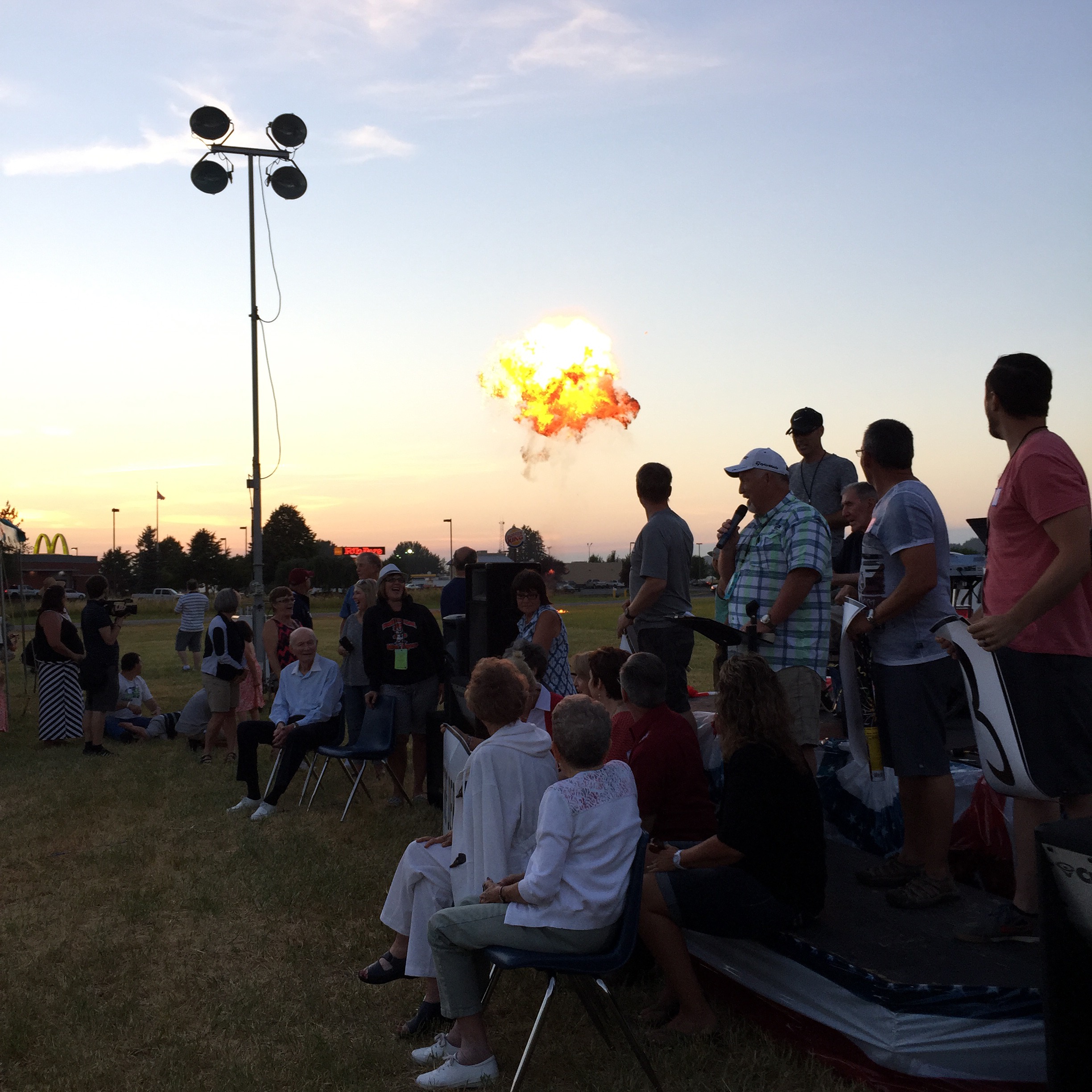 Sunday rounded out the big weekend with a massive celebration at our church. This spring, through generous donations over the years, we were able to pay off the mortgages of both our Chehalis and Centralia campuses. We had a Freedom Party to rejoice over the fact that we are now debt free. My father who is all about debt free living got to present the numbers on how much we will have saved in the long run without a mortgage and interest. Now we can put that money back into the community and use it for kingdom work. I thought it was fitting that on my dad’s actual birthday we got to blow up the mortgages. We literally blew them up. No pieces or ashes remain. Bye-bye mortgage! It’s gone forever! The party ran late into the night and ended with a giant fireworks display. I took Owen home after the mortgage explosion since waiting up for the fireworks was beyond his toddler bedtime. The pictures and videos I saw of the fireworks were impressive. What a perfect way to end a big weekend and a huge celebration.