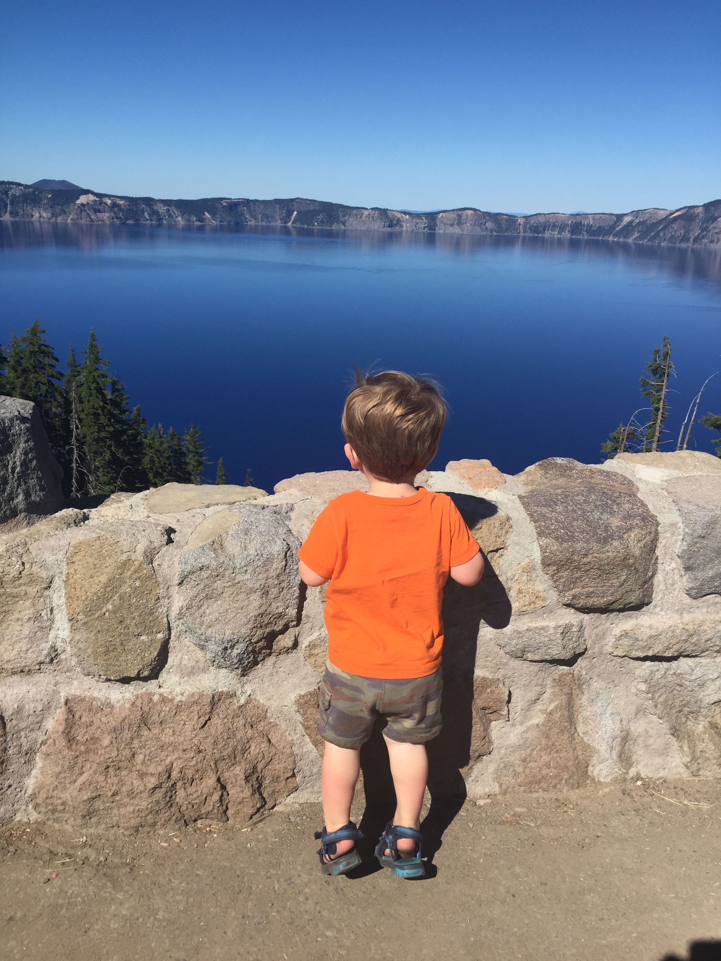 Early Wednesday morning, we set off an adventure. Our destination was Crater Lake National Park. Jeremy and I had been planning a camping trip for this summer and up until a few days before we left, we assumed that we would go to our “usual” spots. Jeremy started to do a little research and got all excited about the possibility of going to Crater Lake. He had never been there and I remember it being a fun stop in my childhood. I was game to change the plan and explore a new campground. On the way down, we realized that was the farthest away from home both Owen and Toby have ever been. They handled the car time like champs and I was grateful.