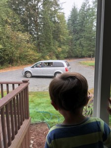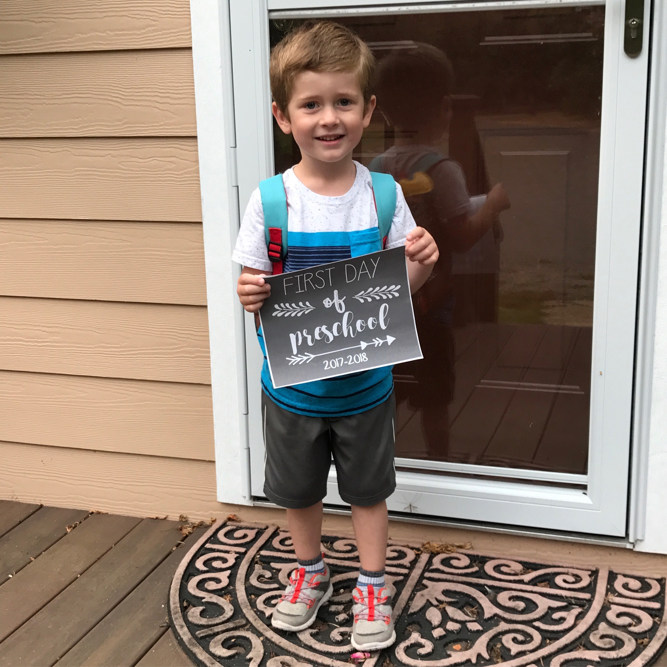 I was nervous about Wednesday morning. I didn’t know what Owen’s mood would be. Would he be excited to go? Would he fight the first day of preschool photo? Well, let me tell you, it was the perfect first day of school get ready morning. We might never be able to achieve such perfection again. Owen willingly got dressed, let me fix his hair and eagerly went out to take his picture by the front door with his backpack. The get ready process and picture took max 20 minutes. Maybe 15. He was good to go. He spent a good portion of the morning skipping around the living room as he waited to leave. Owen waved good-bye to Graham and I from the van and he was off.