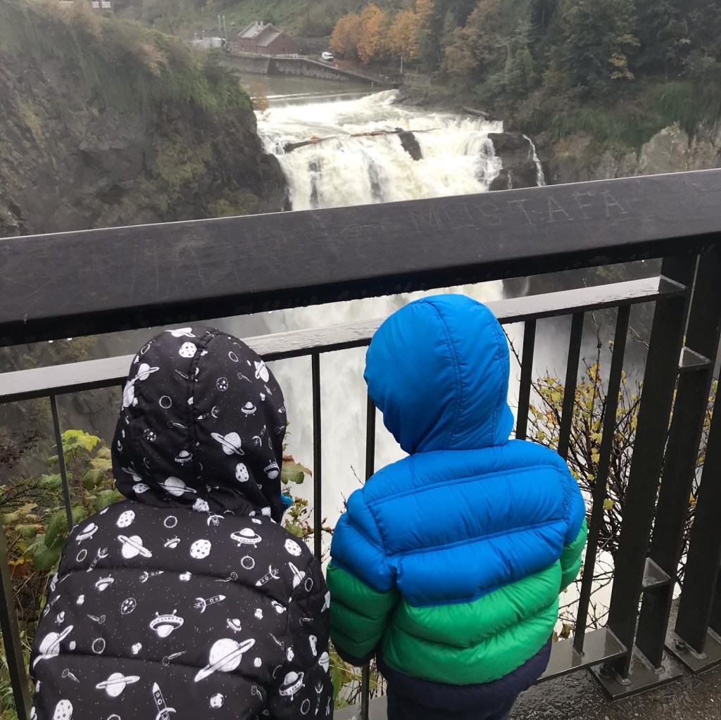 Birthdays this year were a pick-your-own-adventure kind of a celebration. Graham decided he wanted to go to a new waterfall, so we selected Snoqualmie Falls to visit. The waterfall was impressive and the boys loved watching the powerful water. We even felt the mist from the falls spray over us. We went to lunch in Bellevue and then Graham went birthday shopping. We enjoyed our time in The LEGO Store and The Disney Store. Graham’s original birthday request was to go to a playground, so we stopped in Olympia on the way home for some park playtime. We grabbed pizza and cake for dinner. Spur of the moment, we invited Nana, Papa, Grandma, and Grandpa to join us for dinner. Having his grandparents end the day with him was the perfect birthday wrap-up for Graham.