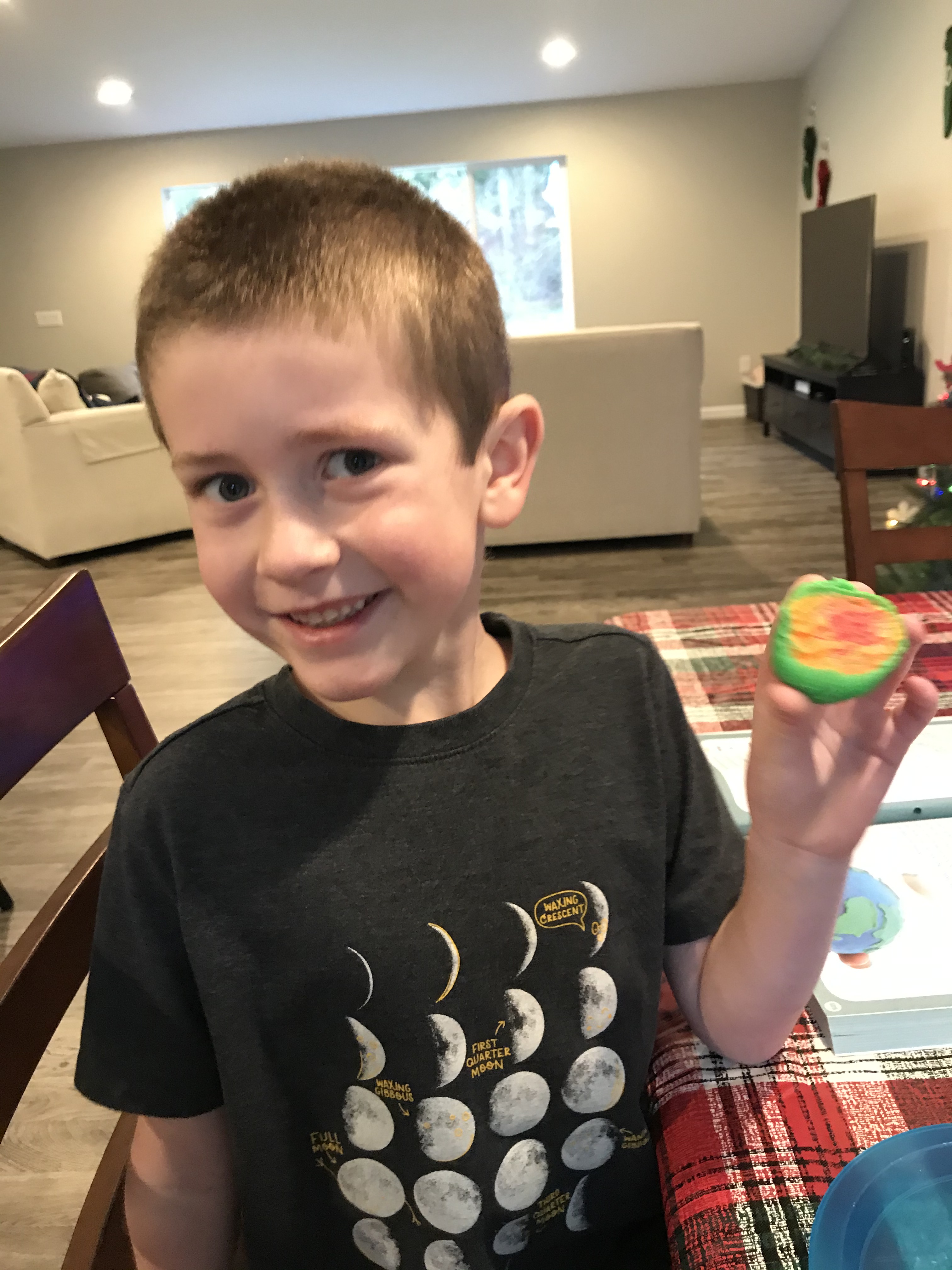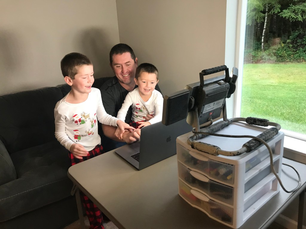 We were able to make one indoor Christmas activity happen today. We visited Santa! It was too tempting to pass up an 2020 photo opportunity of what the holidays really looked like. Santa was not only wearing a mask, but he was also behind a plexiglass shield. We all had our temperatures checked before waiting in a socially distanced line. The boys had to keep their masks on for the photo, so as they “elf” said, they had to “smile with their eyes!” Graham took that advice to heart as you can see in the picture below. The kids asked Santa for a drone and a spy kit. The store sent us off with ornament crafts, packets of hot chocolate, and tiny candy canes.