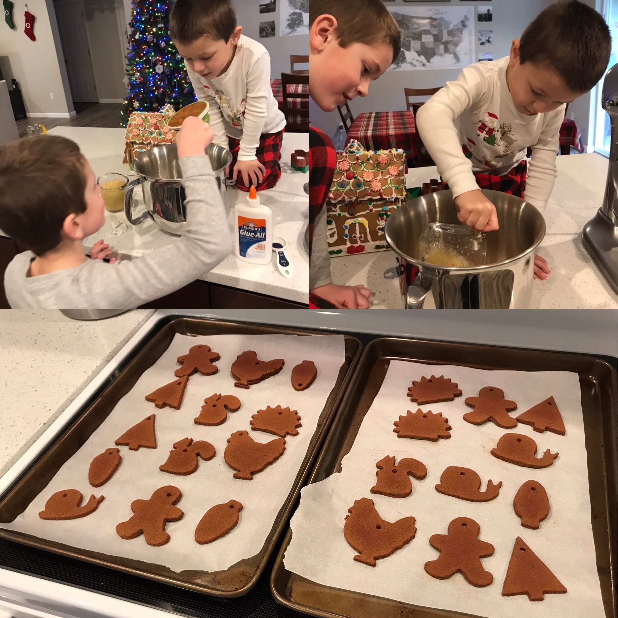 Tuesday was cinnamon ornaments. This is a classic school craft, but I’ve never personally made them before. The cinnamon smell was so strong that the boys abandoned me after they each made two ornaments. The dough actually made more than I expected.
