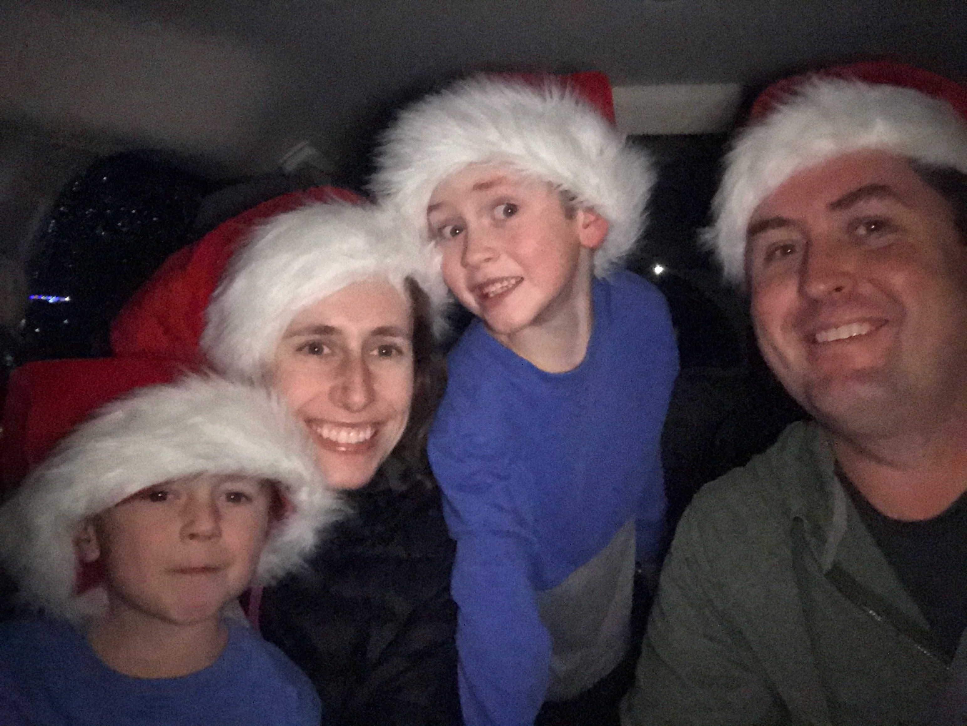 On Thursday, we drove through a local park to see the Christmas light display. We love this tradition! This year, we added Santa hats to the outing to make it more festive.