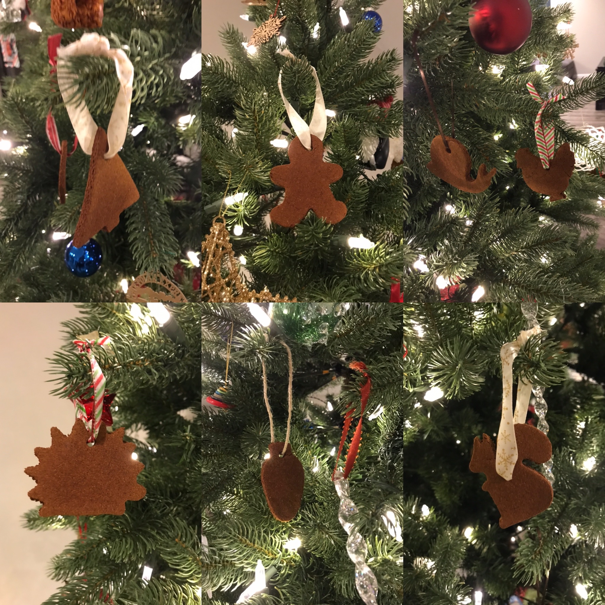 The finished results – we have now have plenty of cinnamon trees, men, snails, chickens, hedgehogs, lights, and squirrels around our tree. We also gifted a few ornaments to family members, because we had a ton!