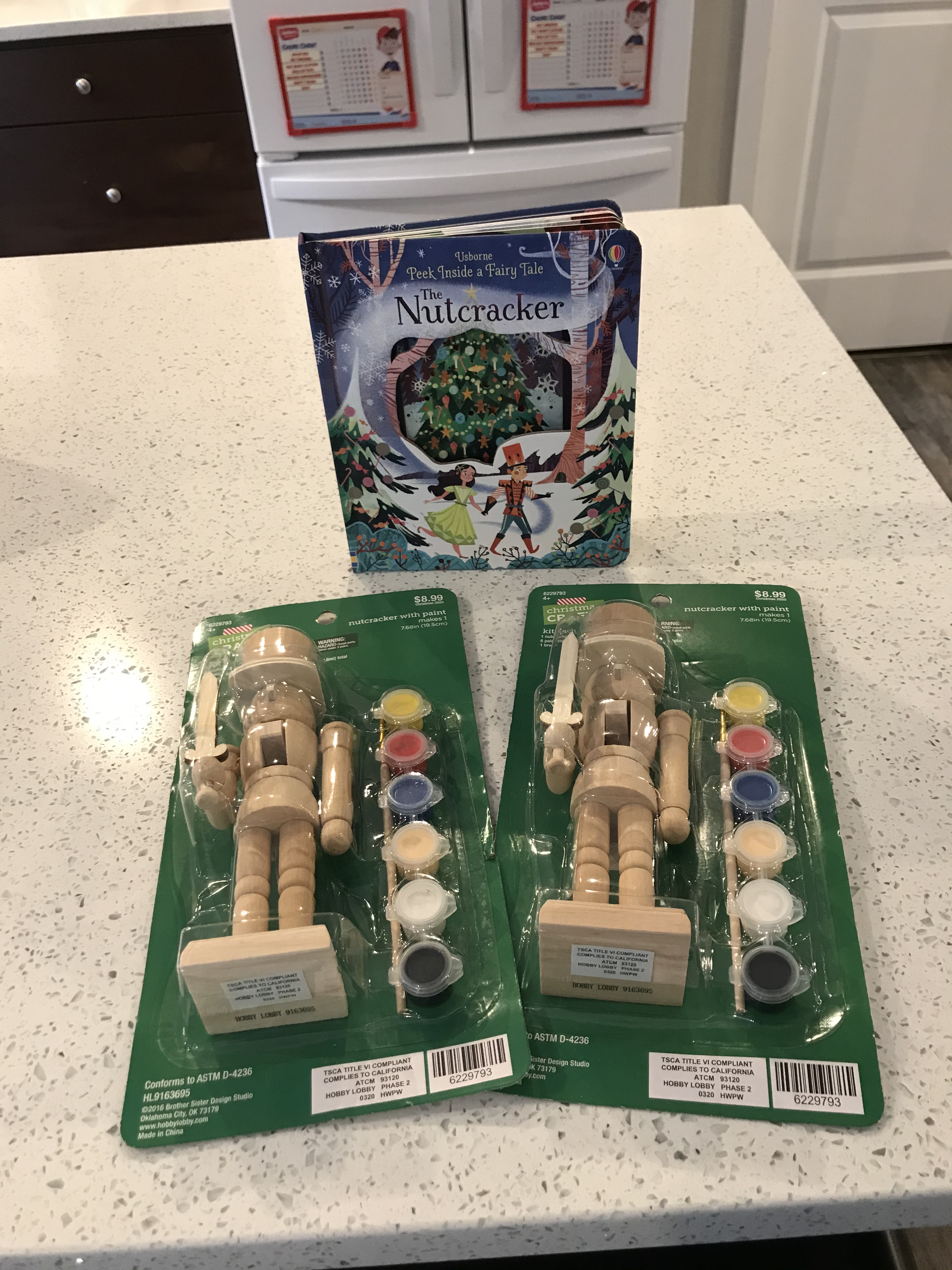 Monday was Nutcracker day! We painted these nutcrackers from Hobby Lobby and read the story from our home library.
