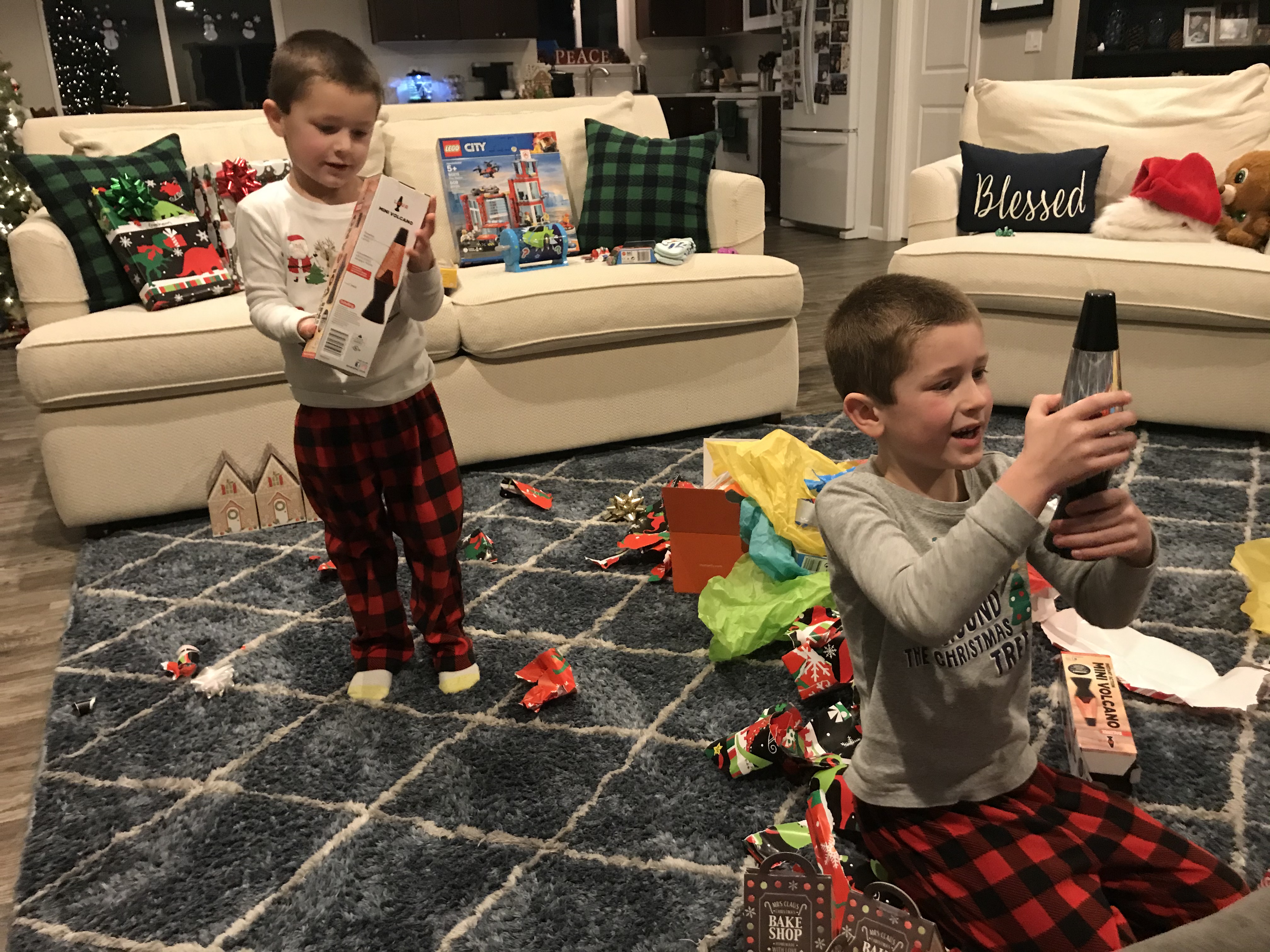 It was interesting to be home for Christmas with no travel plans. Usually, we are racing from place to place so our kids open their gifts, but rarely do they get to play with much more than one item before the rest of the gifts are tucked away. The thing I noticed most about being home was the kids opened EVERYTHING on Christmas day. All the toys, crafts, kits, games, etc. where opened to play with. The boys hopped from activity to activity all. day. long. I thought Christmas would be this quiet, relaxing day, but actually it was non-stop package opening, adding batteries, assisting with crafts, and assembling toys. The boys had a ton of fun and their contagious joy made it a Christmas to remember.