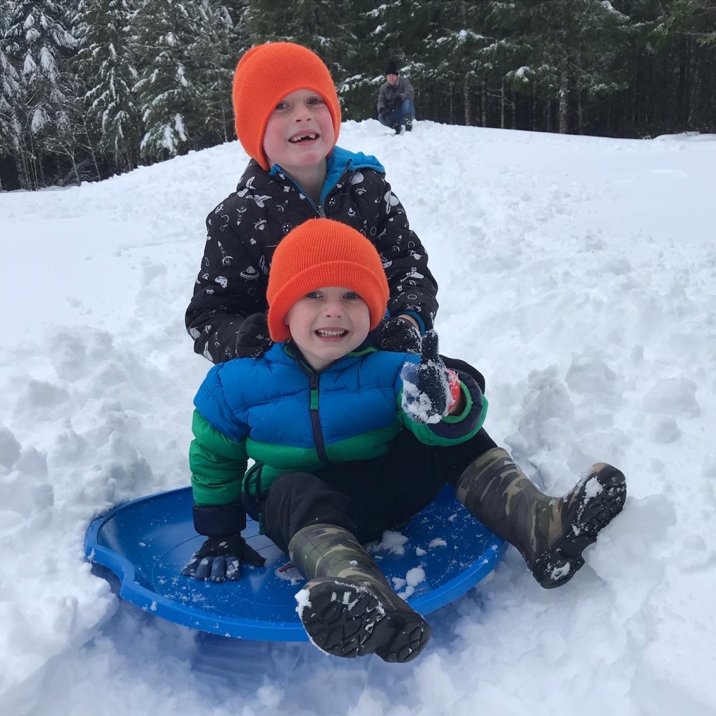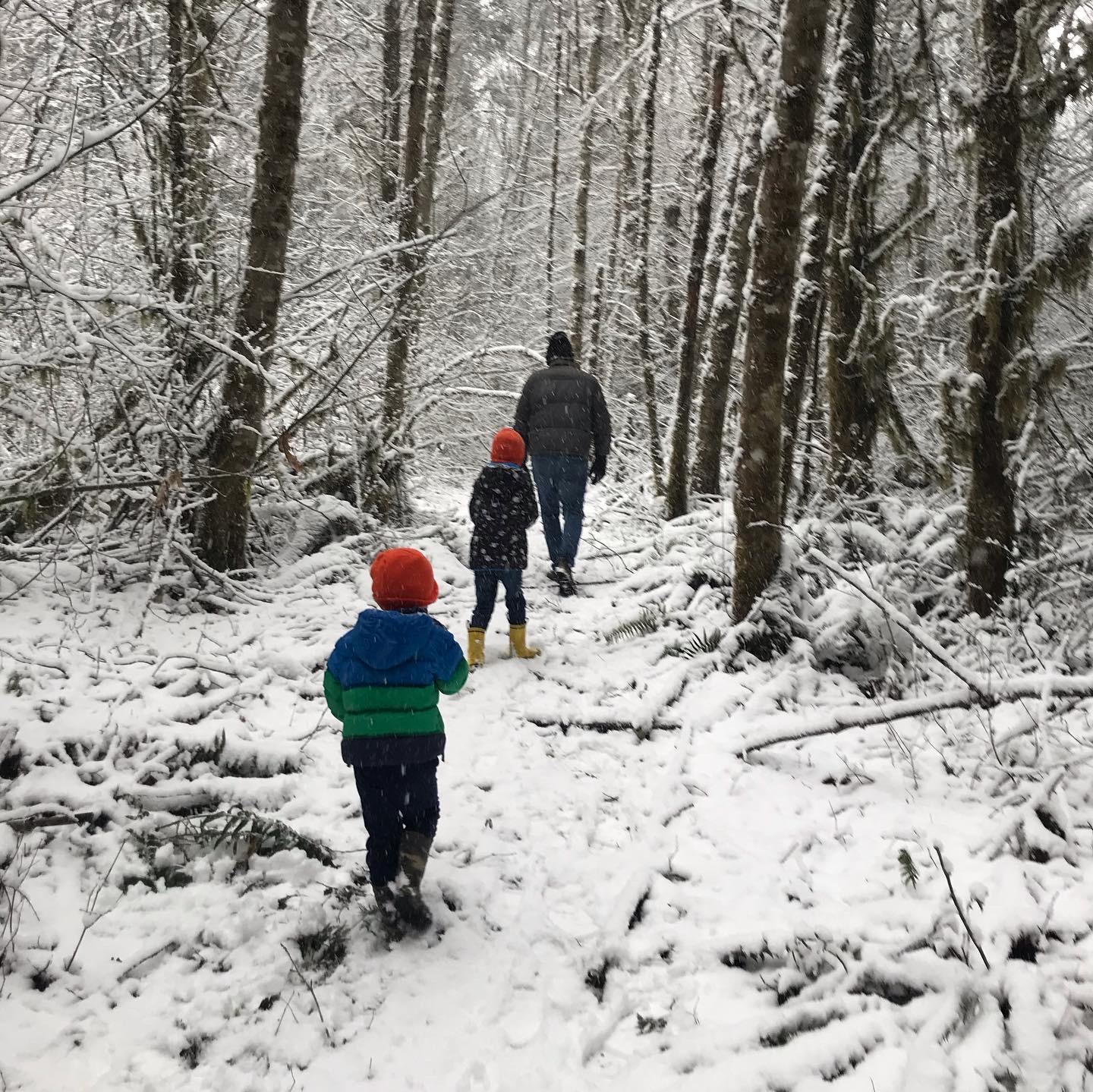 The snow had many highlights! I love when the world goes white. The combination of white snow on deep green trees just does something to me! We took many family walks. Because we live in the country, our sledding hill just happens to be our septic mound. The boys loved sledding the most of all the snow activities. A traditional Snowman was made as well as many snow angels. On one walk down to the main road, the boys went “skating” (aka sliding) on the icy roadway. We enjoyed warming up in our hot tub while snowflakes fell around us. Simply magical! Oh, we also lost power briefly during the day on Saturday. Luckily it was back on quickly and we didn’t get too chilly. And, we had an adventure on Friday with a weasel in our yard. The little guy seemed bent on hanging out under our deck. Never a dull moment around here!
