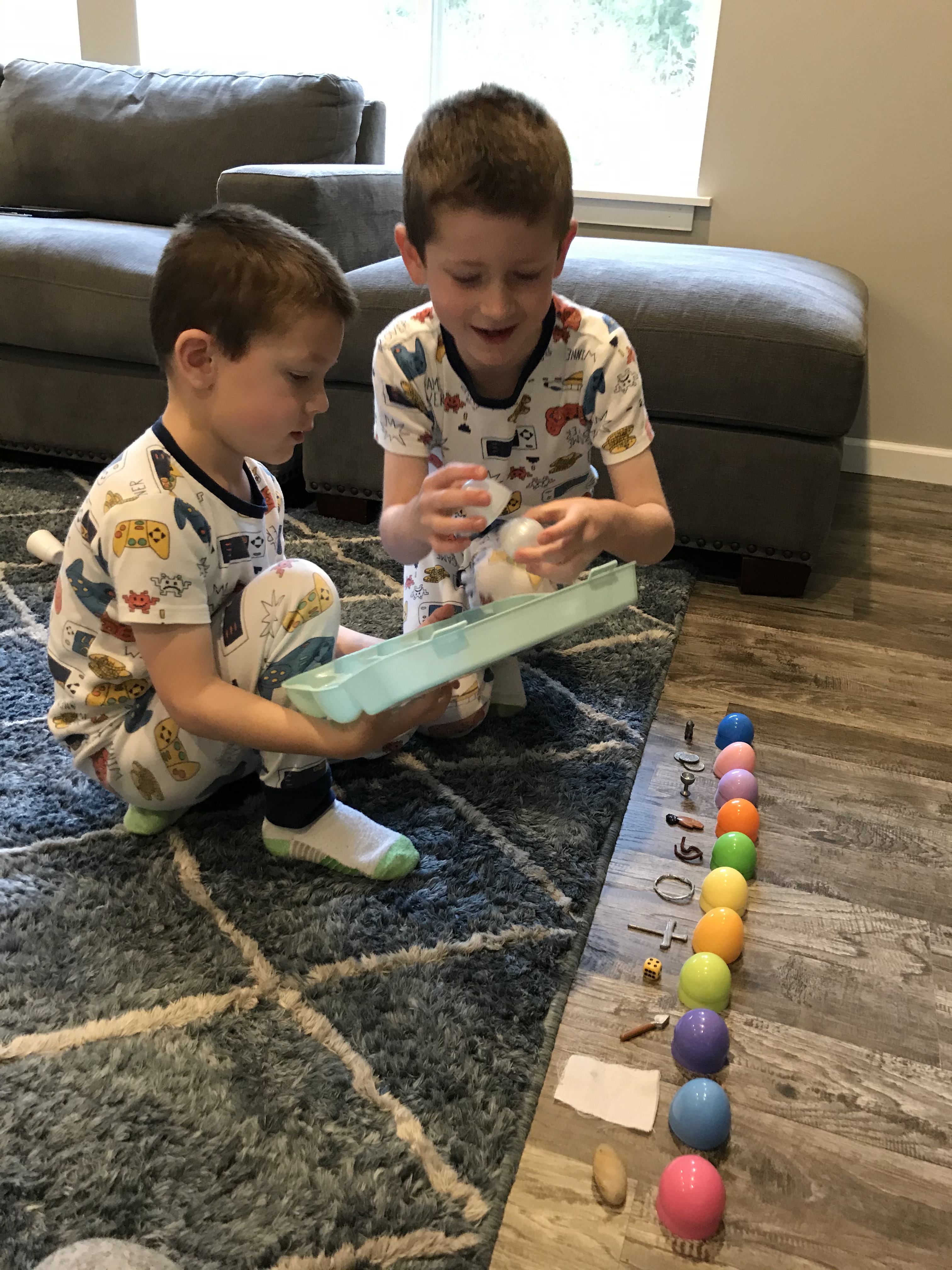 Jeremy worked on Easter Sunday morning. I’m still watching church online so the boys and I did our church from home. Instead of hopping from family gathering to family gathering like years past, the boys and I said a quick hello to my parents after church. Once Jeremy got home from work, we opened Easter gifts and then went over to his parent’s house for an egg hunt with the cousins. It was great that the weather allowed for us to have an outdoor gathering. We missed seeing our extended family, but seeing some family, even for a short time, gave us a feeling of moving toward normal. The big highlight of Easter weekend is the story of Jesus’ death and resurrection. We love baskets, bunnies, and chocolate, but we are always aware that Easter is a celebration of so much more. This is celebration is so deep and personal. I love the meaningful moment of talking about God’s love for us and Jesus’ sacrifice. As a mom, these conversations with the my kiddos are a time that I treasure.