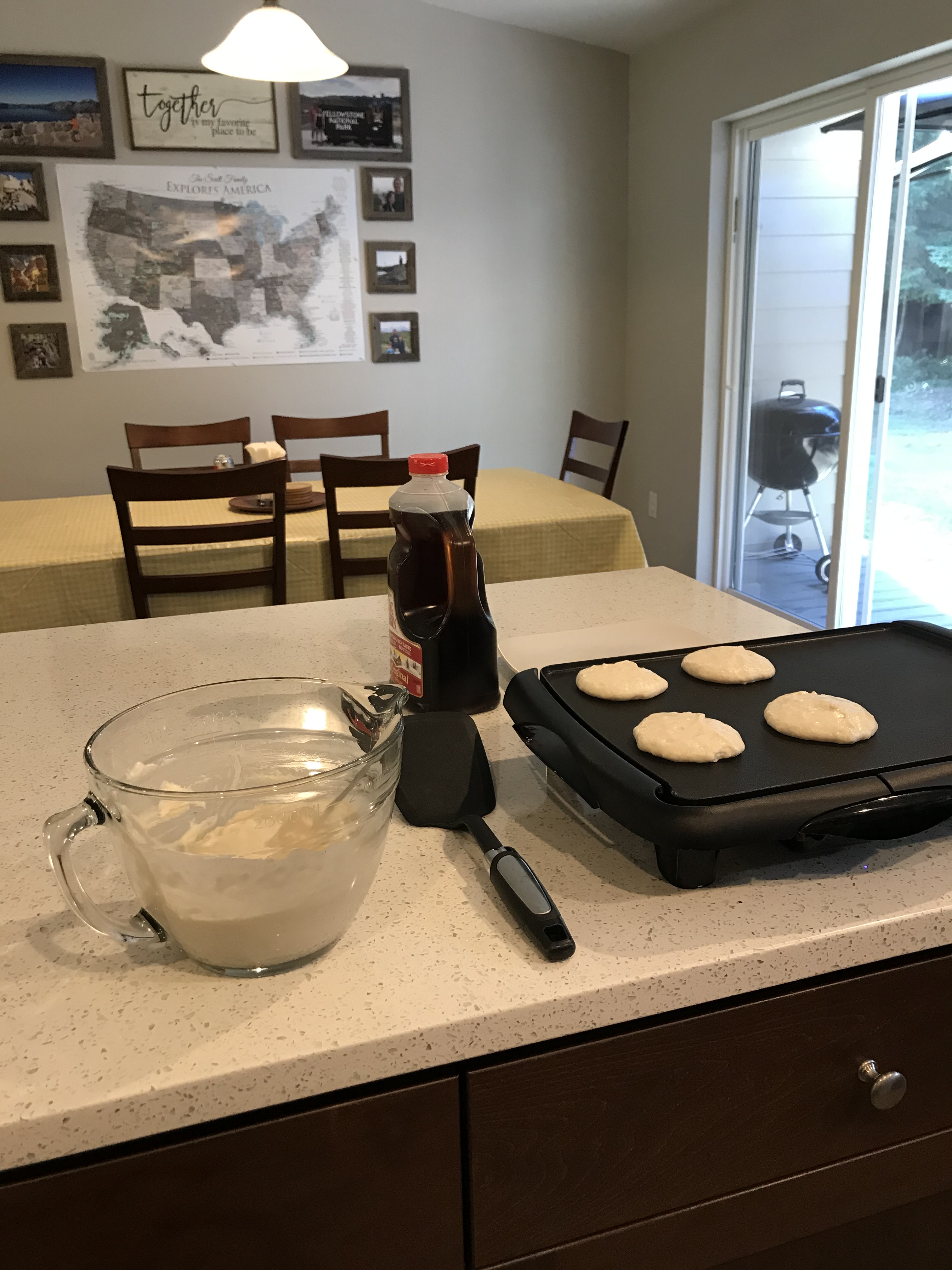 I embraced the late start on Tuesday by making pancakes. I don’t usually make a hot breakfast on weekdays. Our schedule was already off so why not?