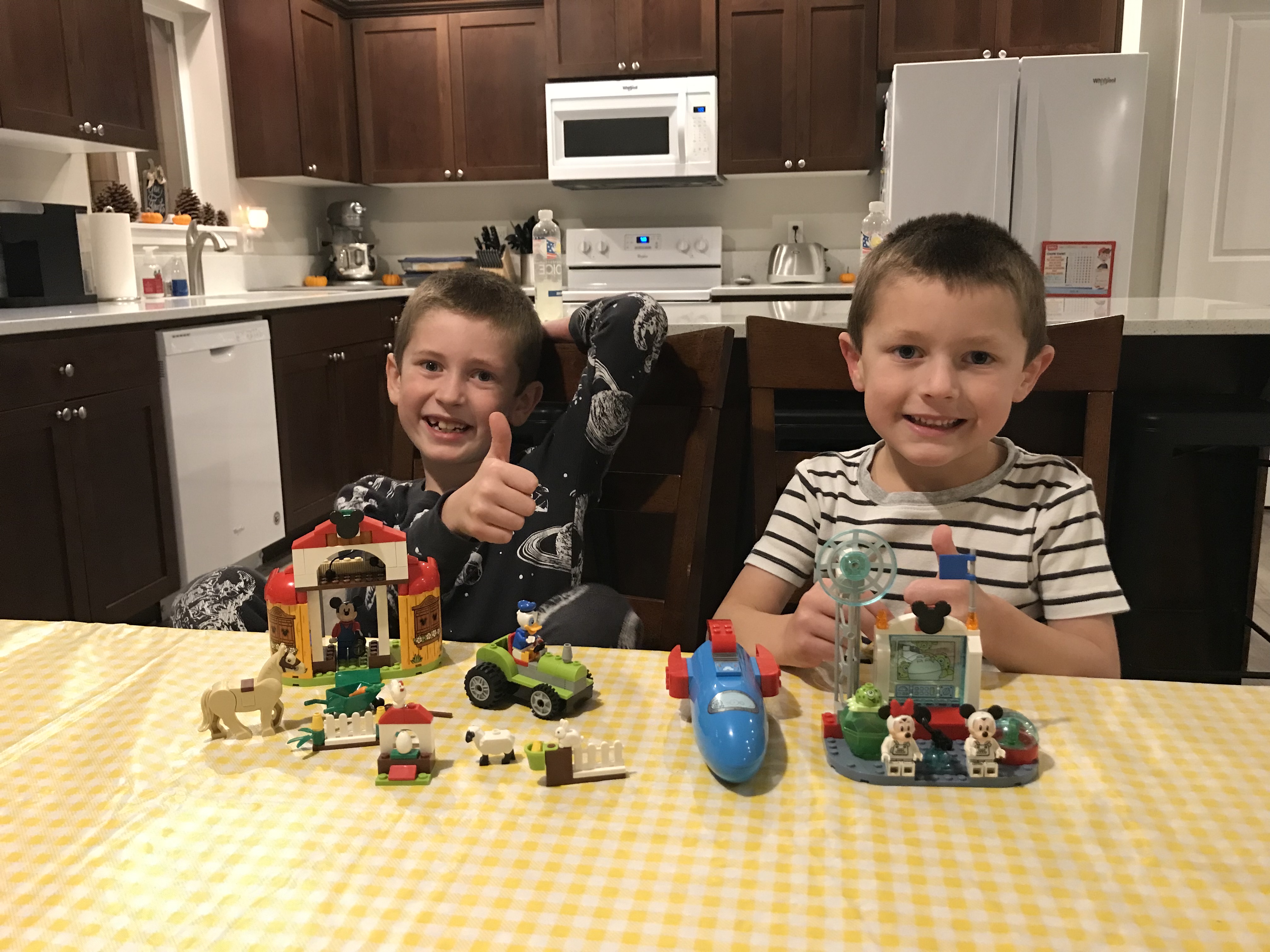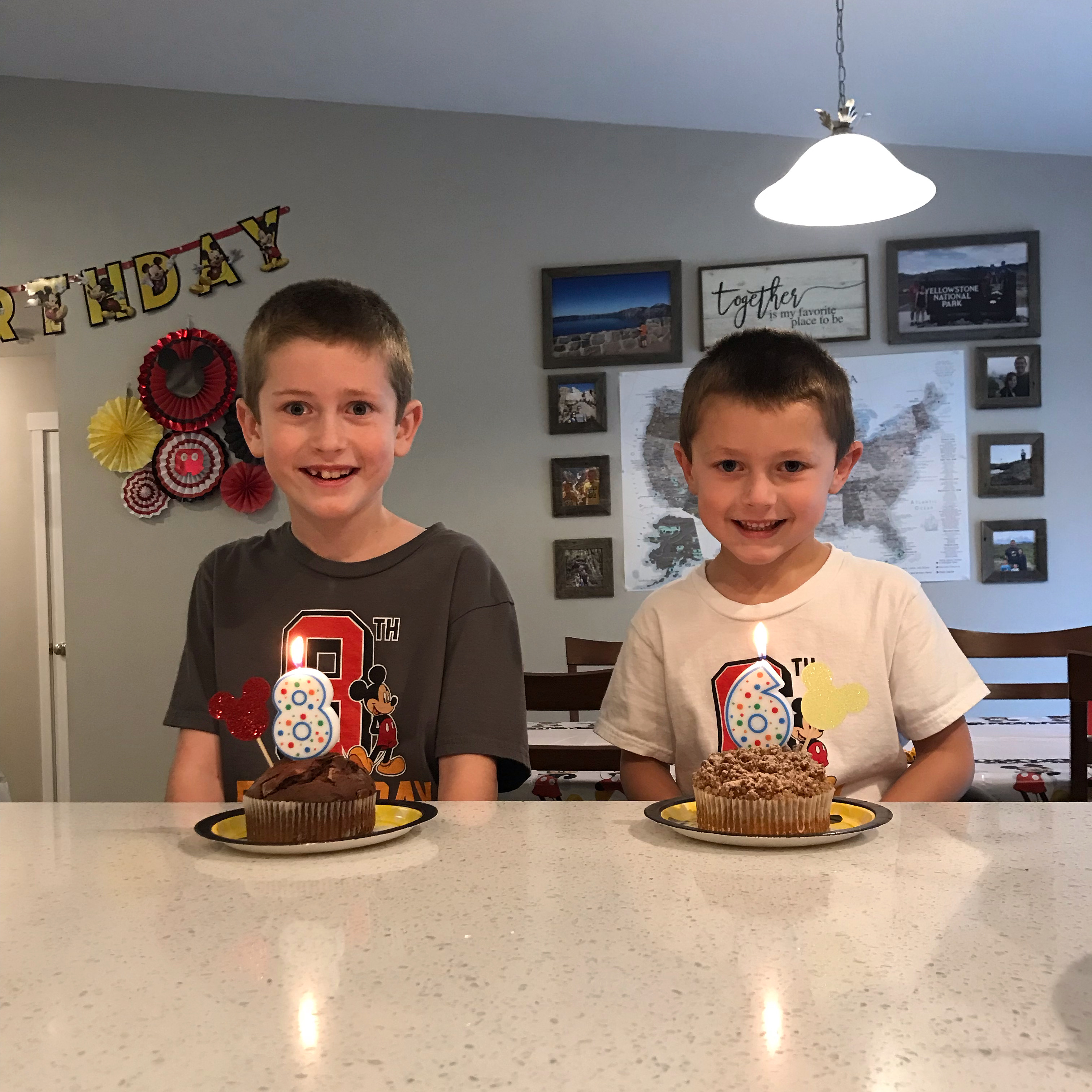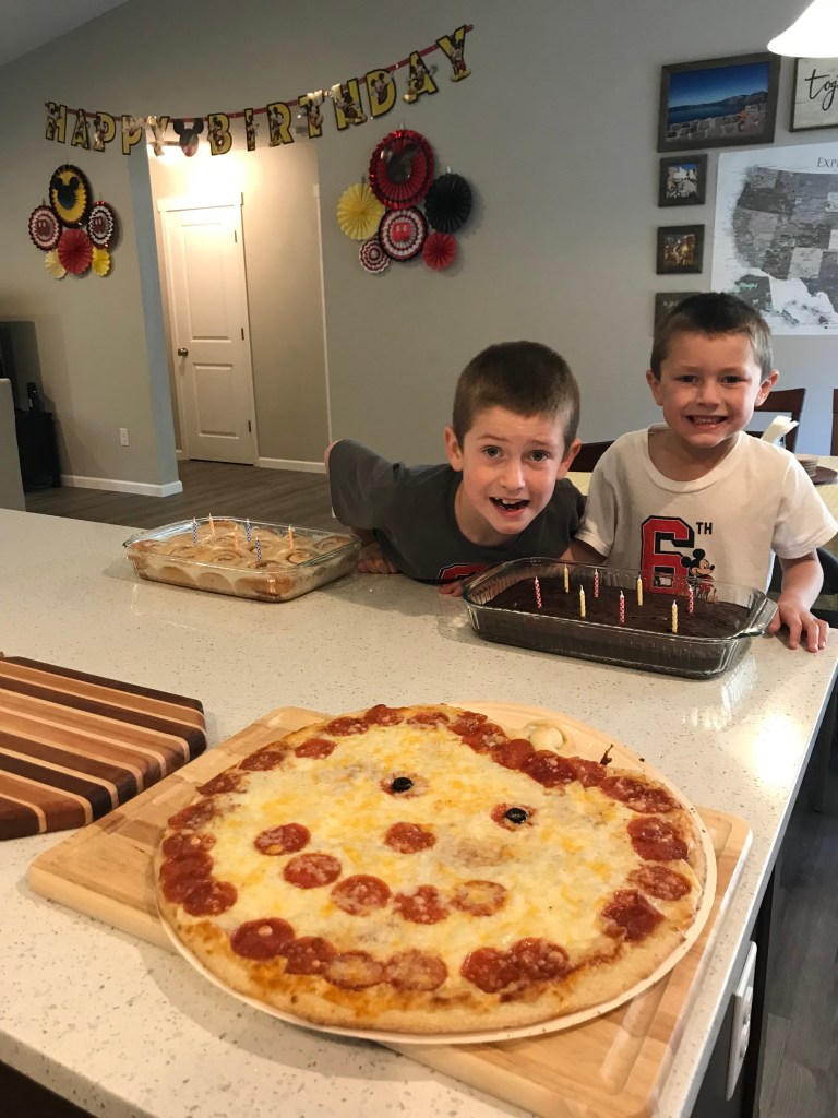 Our birthday celebrations kicked off on Thursday when we had dinner with my family. The boys picked their favorite meal of Papa Murphy’s pizza. Owen picked brownies for dessert and Graham picked cinnamon rolls. Jeremy and I talked the boys into a Mickey Mouse themed birthday this year. Six and eight might be a bit old for Mickey, but 1) they still watch Mickey Mouse and 2) we used the theme to announce our trip to Disneyland next month. Since my parents are joining us on our Disney adventure, we thought this family dinner would be a perfect time to share our big news. Jeremy programed Alexa to tell the boys that we are going to Disneyland. The kids sat silent after Alexa told them they were going to fly on an airplane to meet Mickey Mouse. They weren’t sure what to make of it. After reassurance that this was in fact true and a few YouTube videos to show just how awesome Disneyland is, we had some very excited kids (and adults, too)!