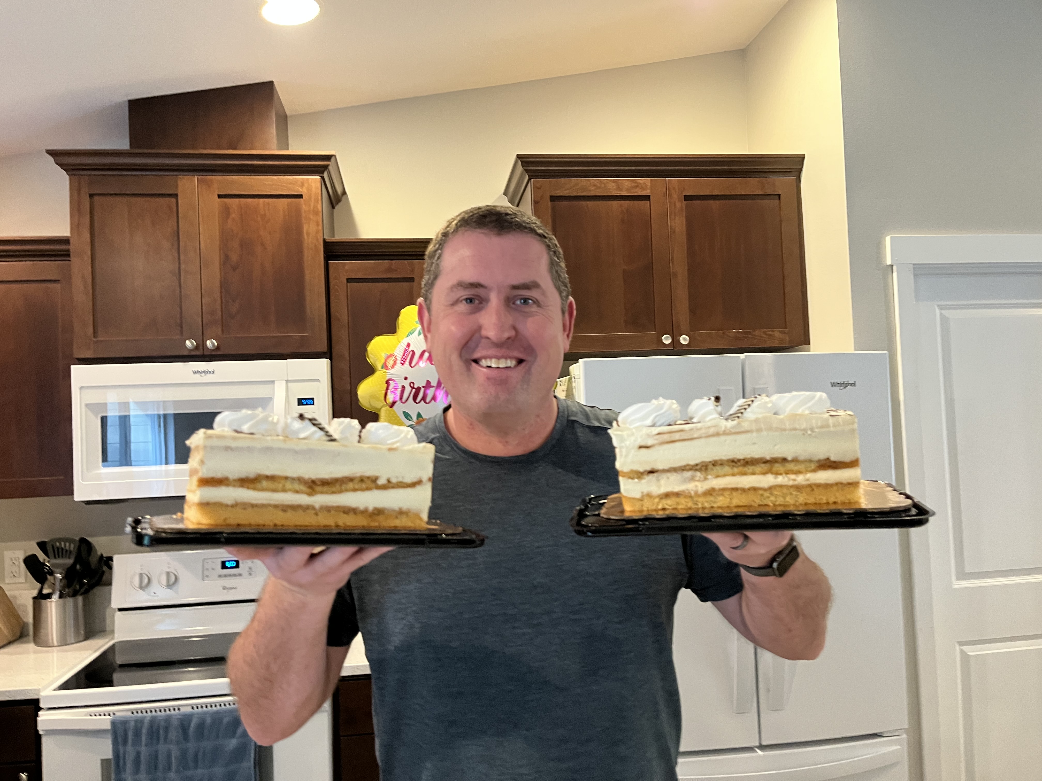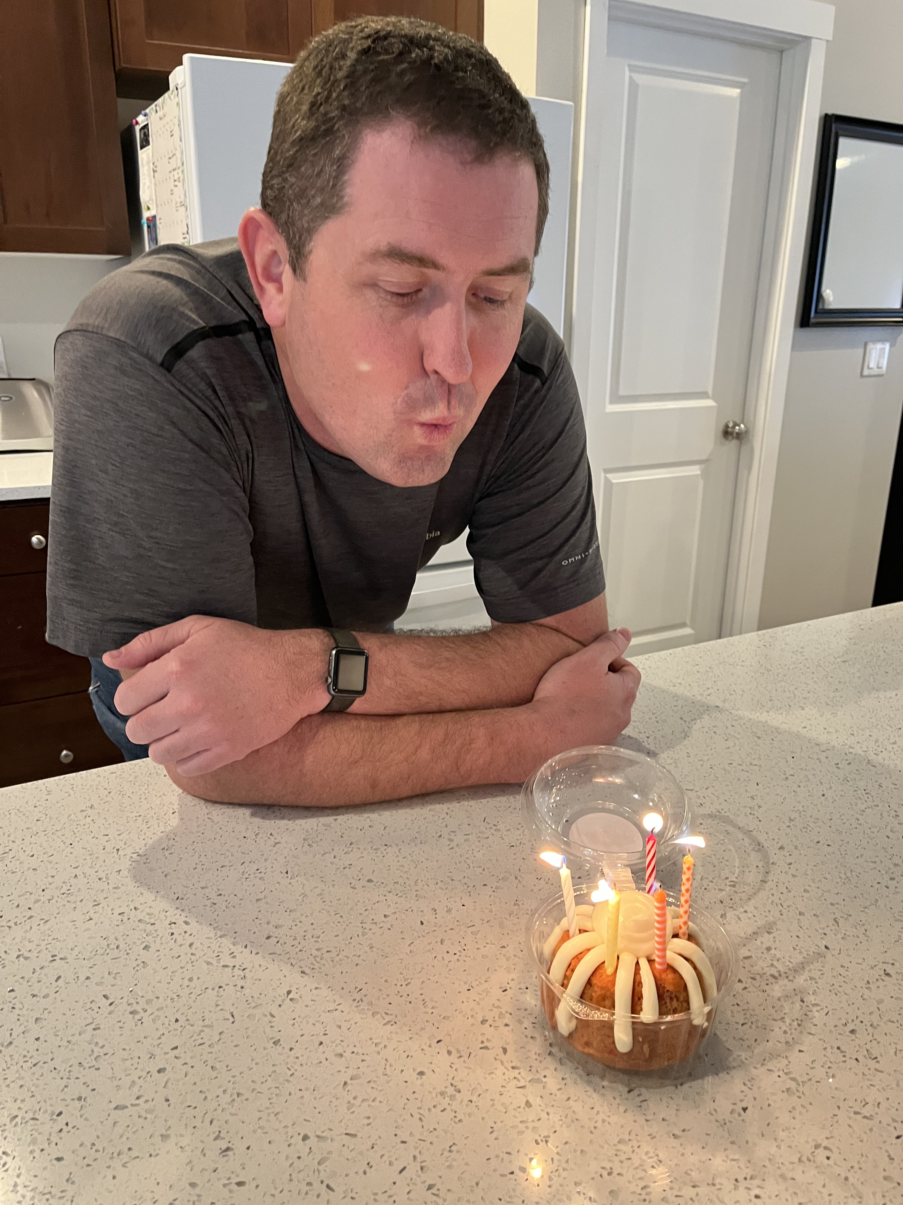 Jeremy’s lunch of choice was a burger at Five Guys. We had a buy one, get one free coupon from Nothing Bundt Cakes, so we picked up bundlets as his birthday dessert. After two meals out, we made it home for Chinese food leftovers from a family dinner the day before.