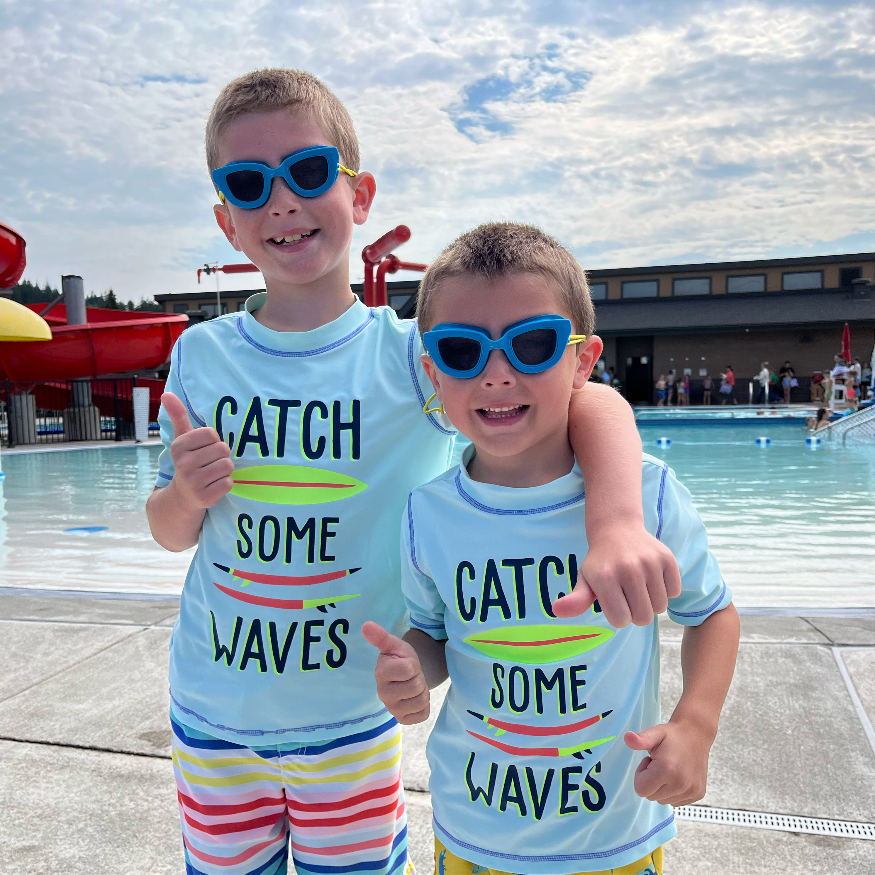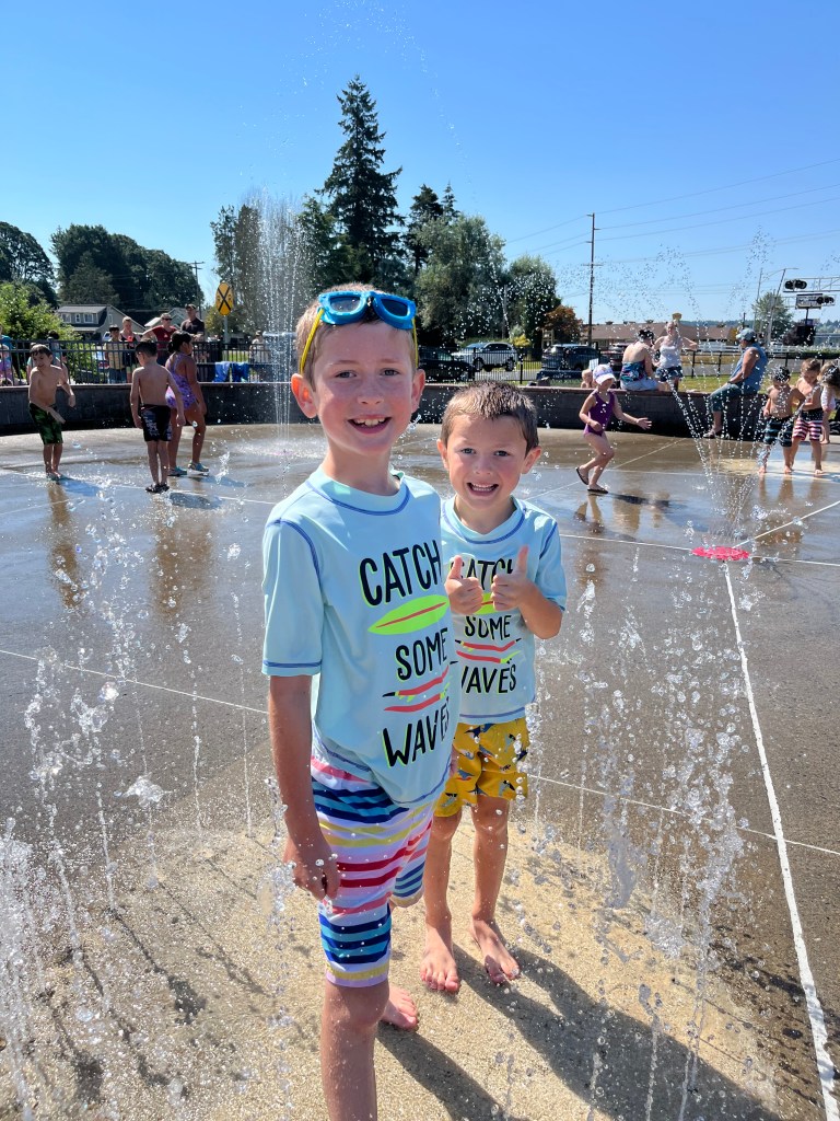 The boys have enjoyed pool parties with friends and family. Jeremy took them to the local area spray parks on one of our hottest days. (We just came off seven days in a row above 90 degrees – very rare in our corner of the PNW.) Jeremy and the boys went on a scouting adventure on Monday in preparation for hunting season. Jeremy let them tagalong last night to National Night Out hosted by our local police department. Our church provided inflatables and the whole event was full of freebies and fun for families. The boys had a blast! They also started swim lessons this week, because it’s just not summer without swim lessons!
