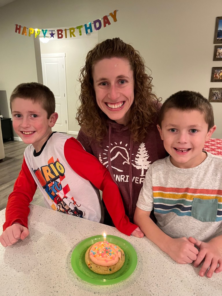 Yesterday was my 37th birthday! Happy birthday to me! It was a good day filled with food and family. Since our family likes to celebrate birthdays over multiple days, birthday “weekend” kicked off on Friday. The boys presented me with flowers and cards when I woke up. We picked up Chipotle for lunch, Crumbl Cookies for dessert, and Papa Murphy’s pizza for dinner. Part of the birthday celebration was not having to cook this weekend! Yesterday, Jeremy and the boys grabbed my free Starbuck drink and a Safeway maple bar for breakfast. We had mac and cheese and chocolate cake for lunch with my parents and sister. Then dinner was tacos and cranberry bliss bars with my in-laws. Now we’re living off the leftovers as we relax over this long weekend!