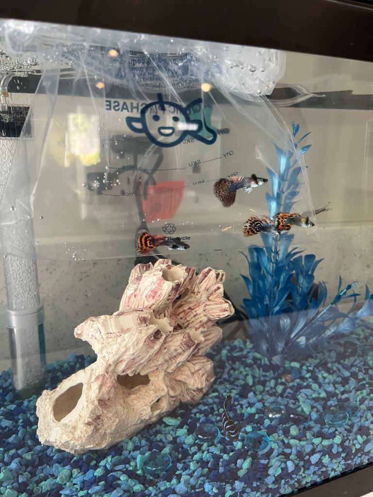 On Friday, March 10th, we went on another fish finding outing and came home with four elephant ear guppies (which I wanted to name after the sugary fair treat). It turns out Barry, Graham’s fish from the week before, thought the guppies were a tasty snack. (Could it be their name, like Sunset, got them in trouble? Elephant Ear – seems possible). Since Barry was too aggressive, we had to let him go. At this point, two of the four guppies have passed. We blame Barry-related trauma. This leaves us now with three fish in the tank – Jeremy’s fish (Sharky) and two guppies (Cinnamon & Sugar). We knew acclimating fish to a new tank and finding good tankmates was a challenging process. Our losses haven’t been a surprise. Our hope is slowly to get our tank to around 7-10 happy fish. I wonder how long that will take at the rate we’re going?