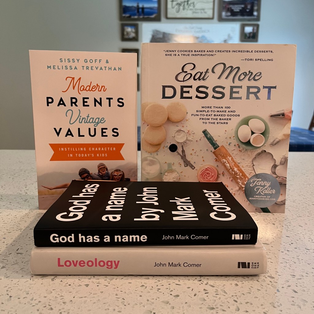 Jeremy offered to take the boys to Powell’s Books so they could select their April books in-person instead of online. Our family has come to love the Powell’s Books at Cedar Hills Crossing. It’s not the iconic downtown location, but we enjoy the store layout and selection. We comb the store and always come away with treasures. For me, it was God Has a Name by John Mark Comer. For Owen, a Boxcar Children book and the first book in The Hardy Boys series. Graham, an Animal Crossing guidebook and a collection of Frog and Toad stories. Jeremy found a Hidden Pictures book to use at church for the kids who arrive early. ThriftBooks also surprised me with a free book so I selected Loveology by John Mark Comer and Eat More Dessert by Jenny Keller (two books, so I could get free shipping… the slippery slope… one free books leads to buying another).
