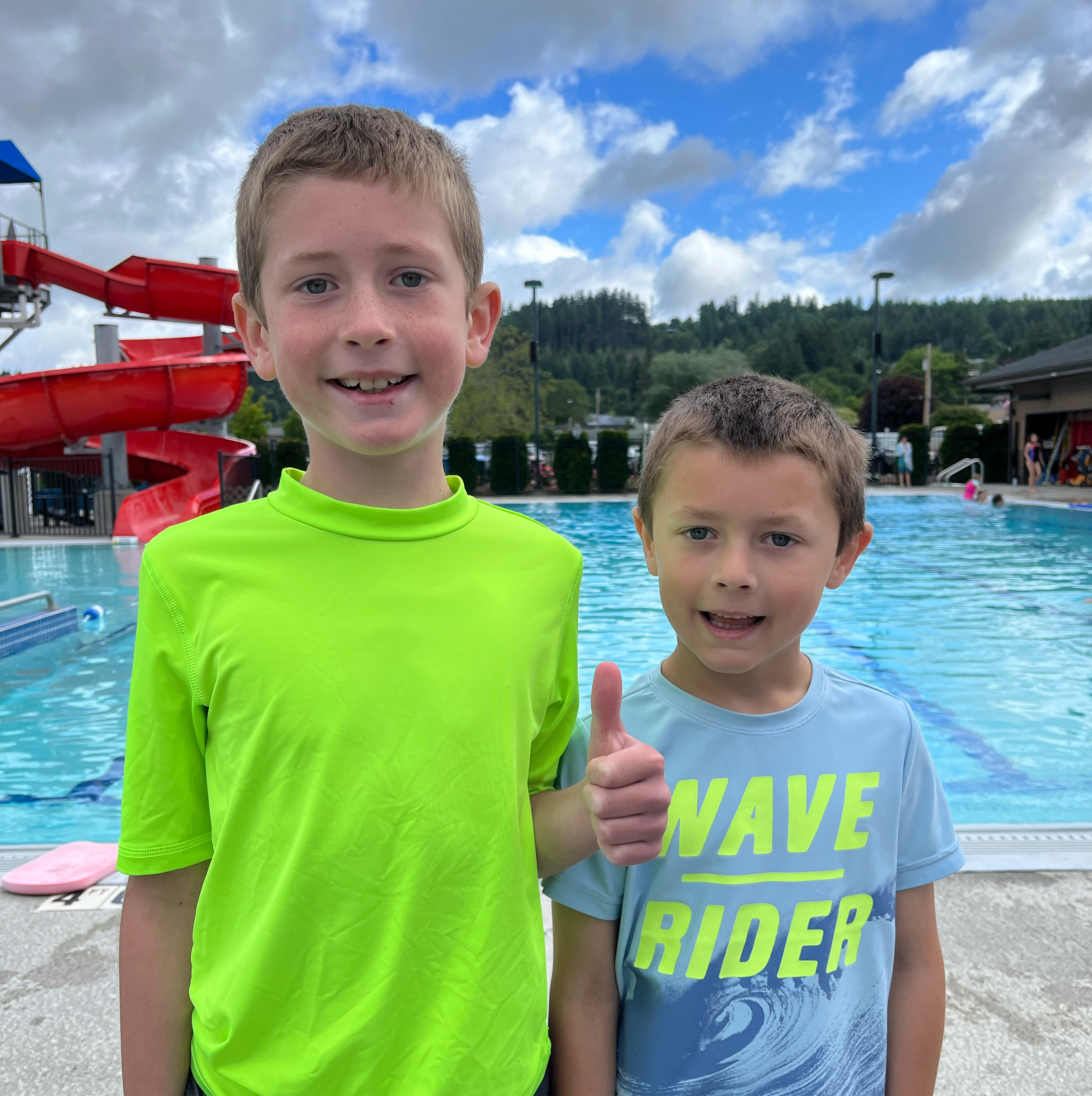 In non-party news, the boys started swim lessons yesterday. The process changed from in-person registration (where Jeremy would wait in a long line that formed before 6:00am) to online. The online format had me nervous because I could only register one kid at a time. I wondered if Kid 2 would lose their class space because I was registering Kid 1. Luckily, we got the classes we hoped for. It was also nice to register the boys while we were out of town at the beach. The boys have done great with their swim skills these first two days. I can tell they’ve been practicing. Graham, especially, has much more confidence this summer. Yesterday was a wet lesson and today was a cold one. Thankfully, the forecast looks better for the rest of the lessons ahead. June weather is a bit unpredictable around here.
