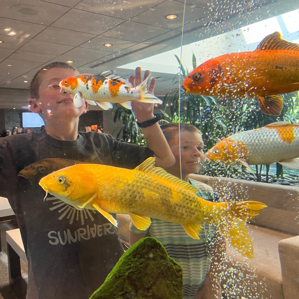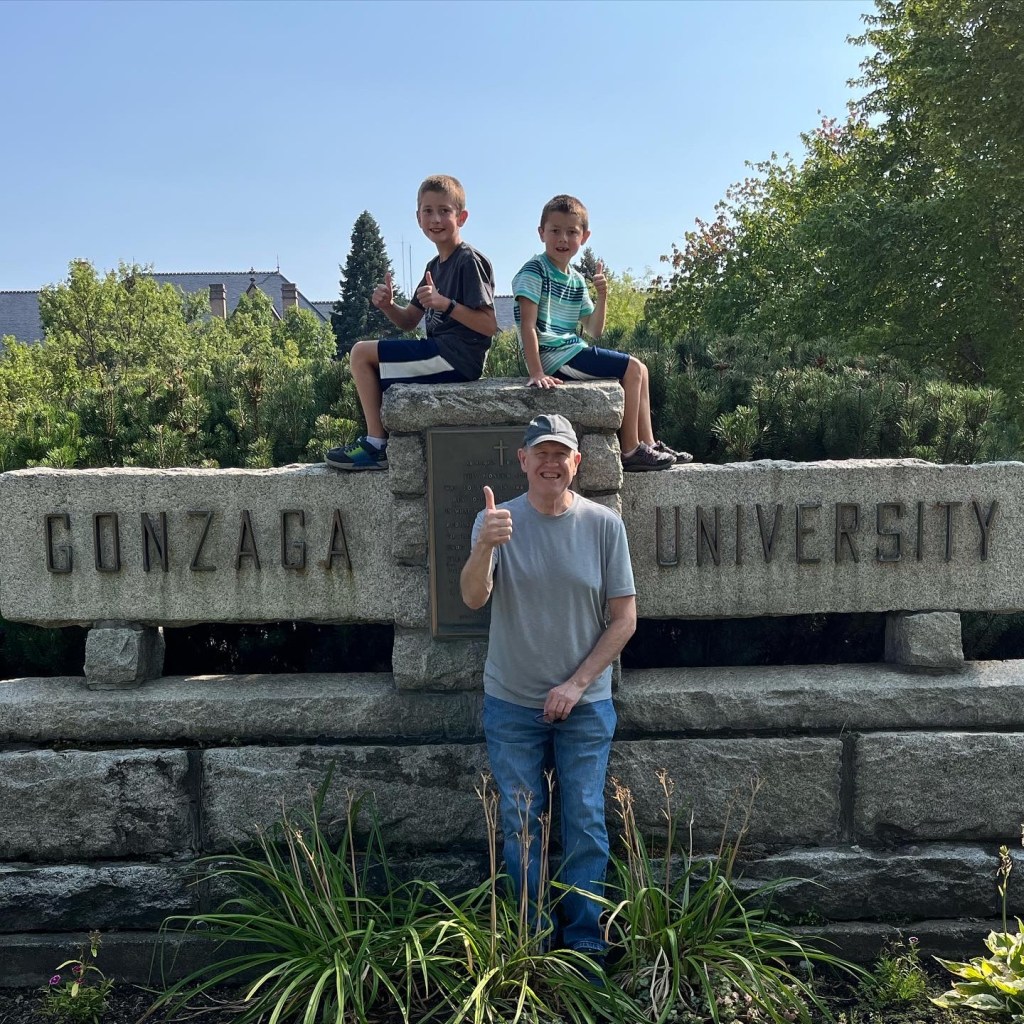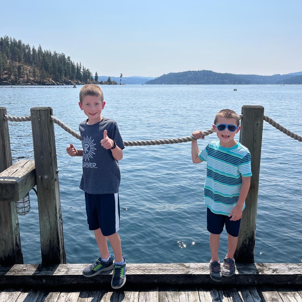 We took off early and left the Rocky Mountains behind us. We made it to Coeur d’Alene, ID in time for lunch. When in Coeur d’Alene, Meltz Extreme Grilled Cheese is a must. We shared our favorite local lunch spot with my family. Jeremy and I attend an annual conference in Coeur d’Alene so we thought it would be fun to show the boys where we stay when we travel to the area. We showed them the lake, boardwalk, a local playground, and took a walk through the Coeur d’Alene Resort lobby. Then it was Grandpa’s turn to give a tour. He took us into Spokane and gave the boys a tour of Gonzaga University, his alma mater. It was fun to see the campus and hear stories of where my dad lived and worked during college. The boys had a lot of fun each picking a souvenir from the huge Zag Shop. After the college tour, we checked into our final hotel and spent over an hour in the hotel pool. Dinner was Applebees across the street from our hotel.