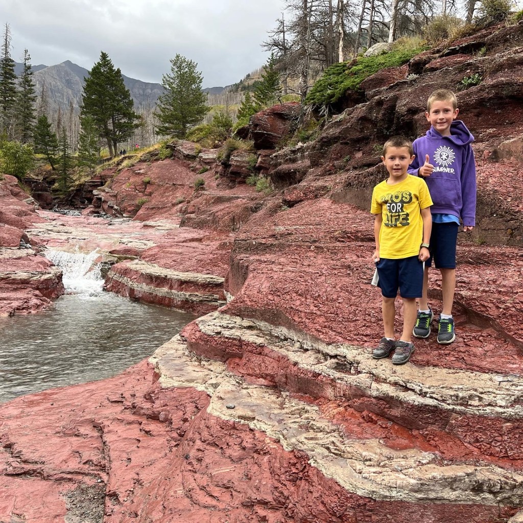 We woke to drizzly rain on our final day in Canmore. The original plan was to head to Calgary and hang out for a bit. We had hoped to do the Calgary Tower, which is slightly taller than our Seattle Space Needle. We thought we would see the sights of the city and surrounding area. But, the weather had other plans! The rain created a foggy, mist all the way to the ground. The city was socked in with drizzle. We decided to skip the Calgary Tower and head south to Waterton Lakes National Park. It wasn’t originally on our itinerary, but it was near our destination for the evening and the weather was better that direction. In Waterton Lakes, we found multiple red chairs, beautiful lake views, and Red Rock Canyon. At the start of the Red Rock Parkway, we saw a grizzly bear! Luckily, it was in the distance and seen safely from inside our car! We ended our time at Waterton Lakes National Park with a drive through their bison paddock. We had tacos for dinner in Cardston, did a little grocery shopping (we bought so much cereal on this trip), and then the boys spent the rest of the evening at the hotel pool. This hotel pool had a water slide, so that made it a huge hit!