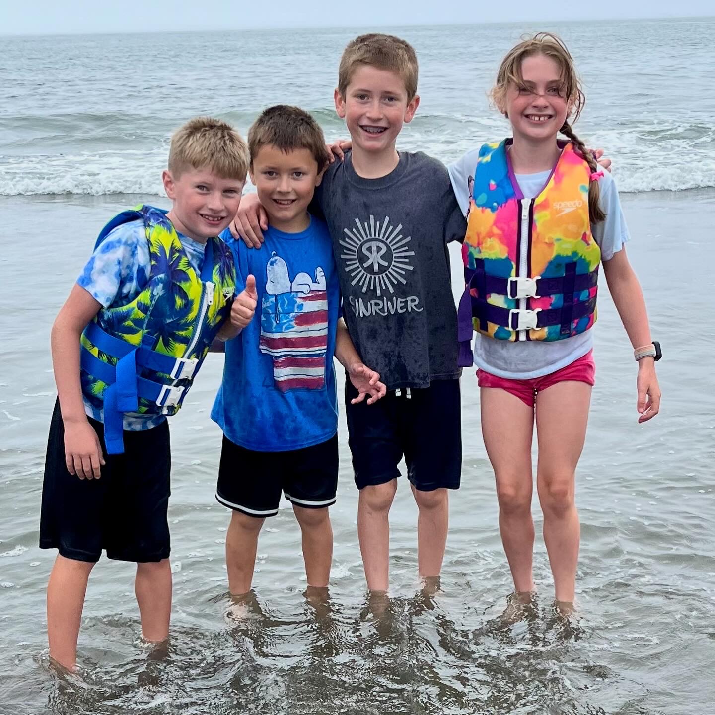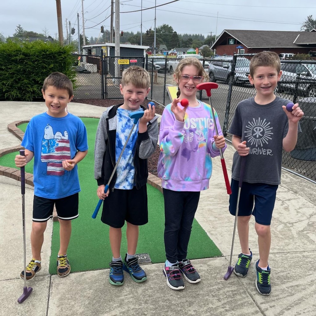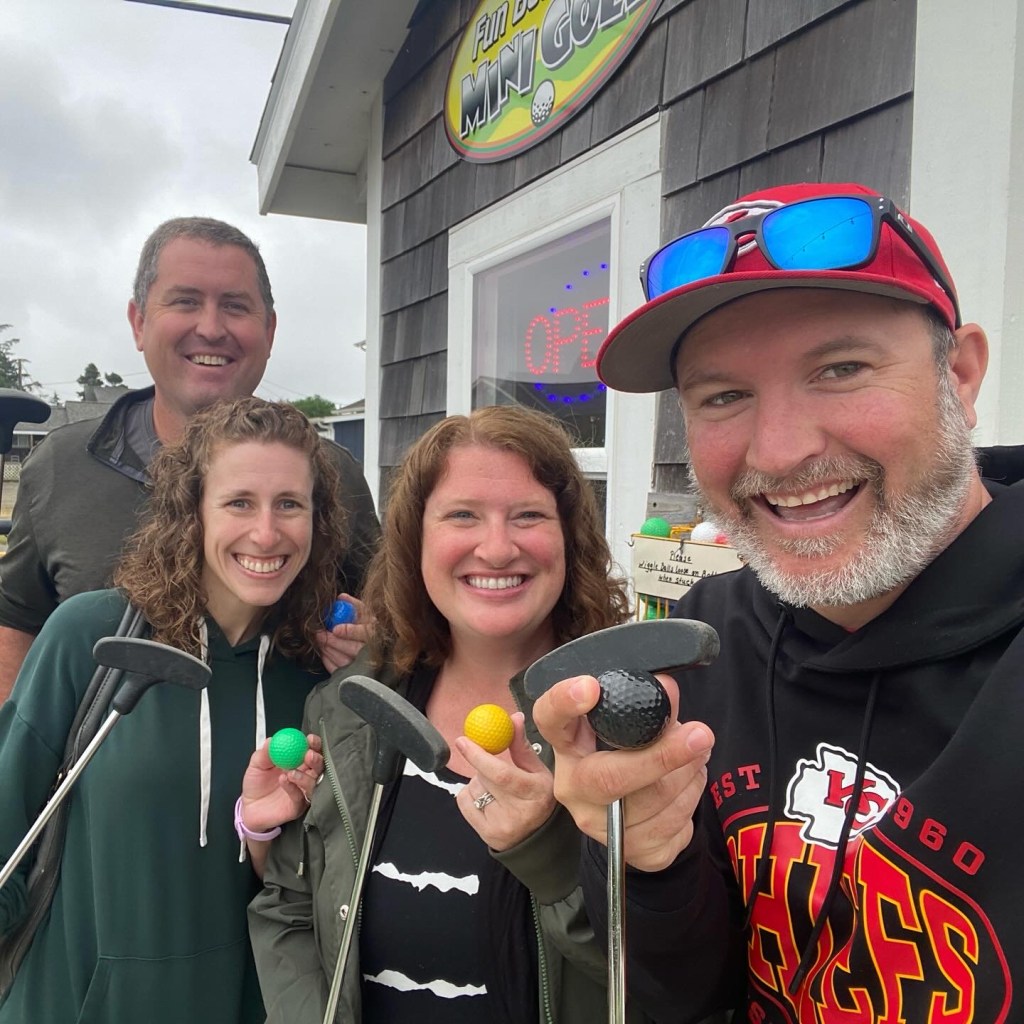 The day after our camping trip, we hosted my forever friend, Maggie, and her family. We played games, ate pizza, and chatted around the table. The kids played hard and Owen fell in love with their puppies. Maggie moved to the other side of the country at the start of 2024. Visits like this will be few and far between with the miles that now separate us. It makes these times extra meaningful. I wish I could slow them down and live in them just a little longer. After having them over a visit, we spent Friday visiting them at the beach (their current home base). We enjoyed a morning of mini-golf, a trip to the bakery, a BBQ lunch, and an afternoon at the beach. My friendship with Maggie has spanned decades and it’s such a joy to watch our families be friends too.