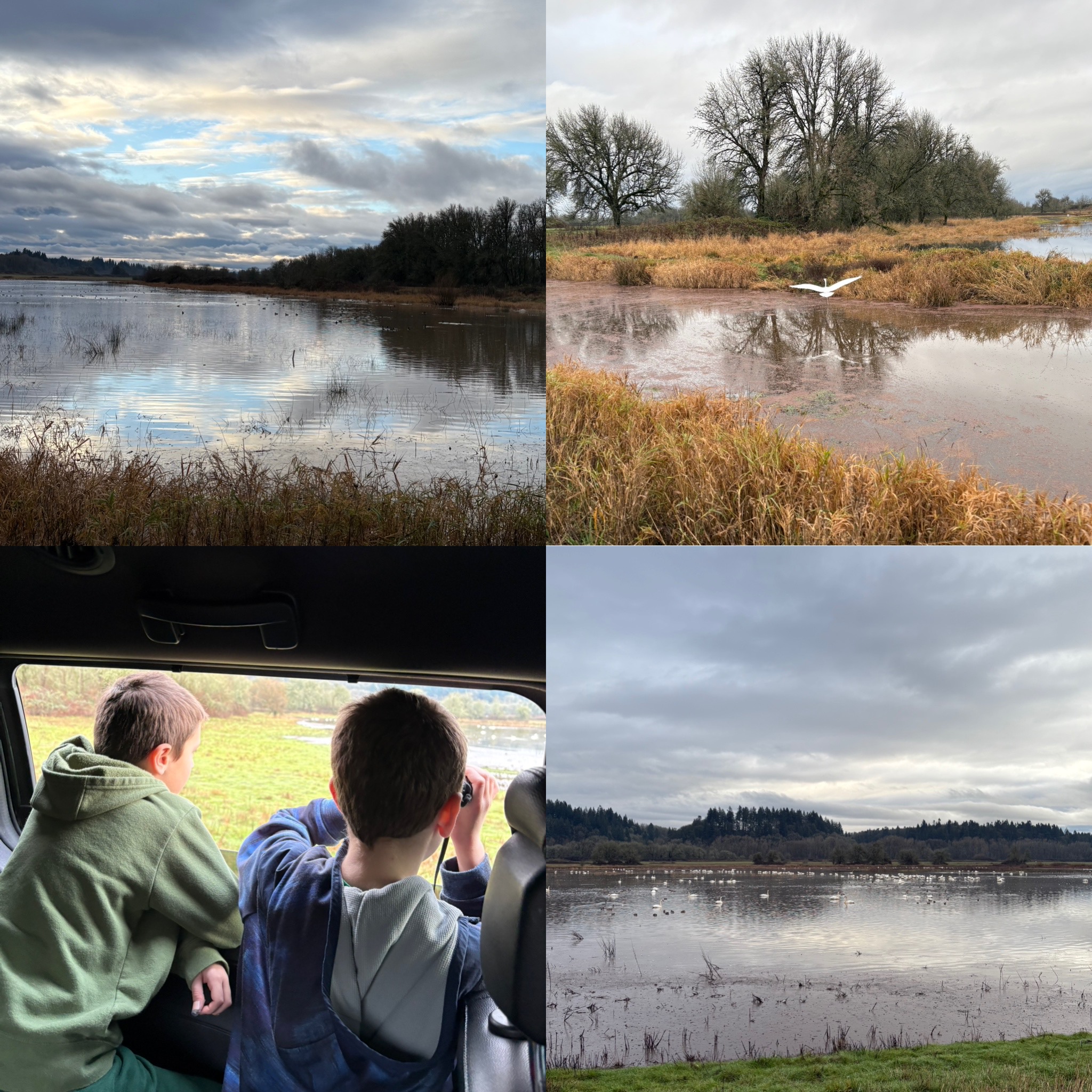 We have a tradition of shopping in Portland the day after Christmas. The boys focused on Rubik’s cubes and Pokémon cards. I purchased a pretty copy of The Tenet of Windfell Hall at Barnes & Noble. Jeremy selected a new board game, Everdell Farshore, for our collection. The highlights of the day were birding at the Ridgefield Wildlife Refuge early in the morning and lunch at the Cheesecake Factory with special desserts to share.