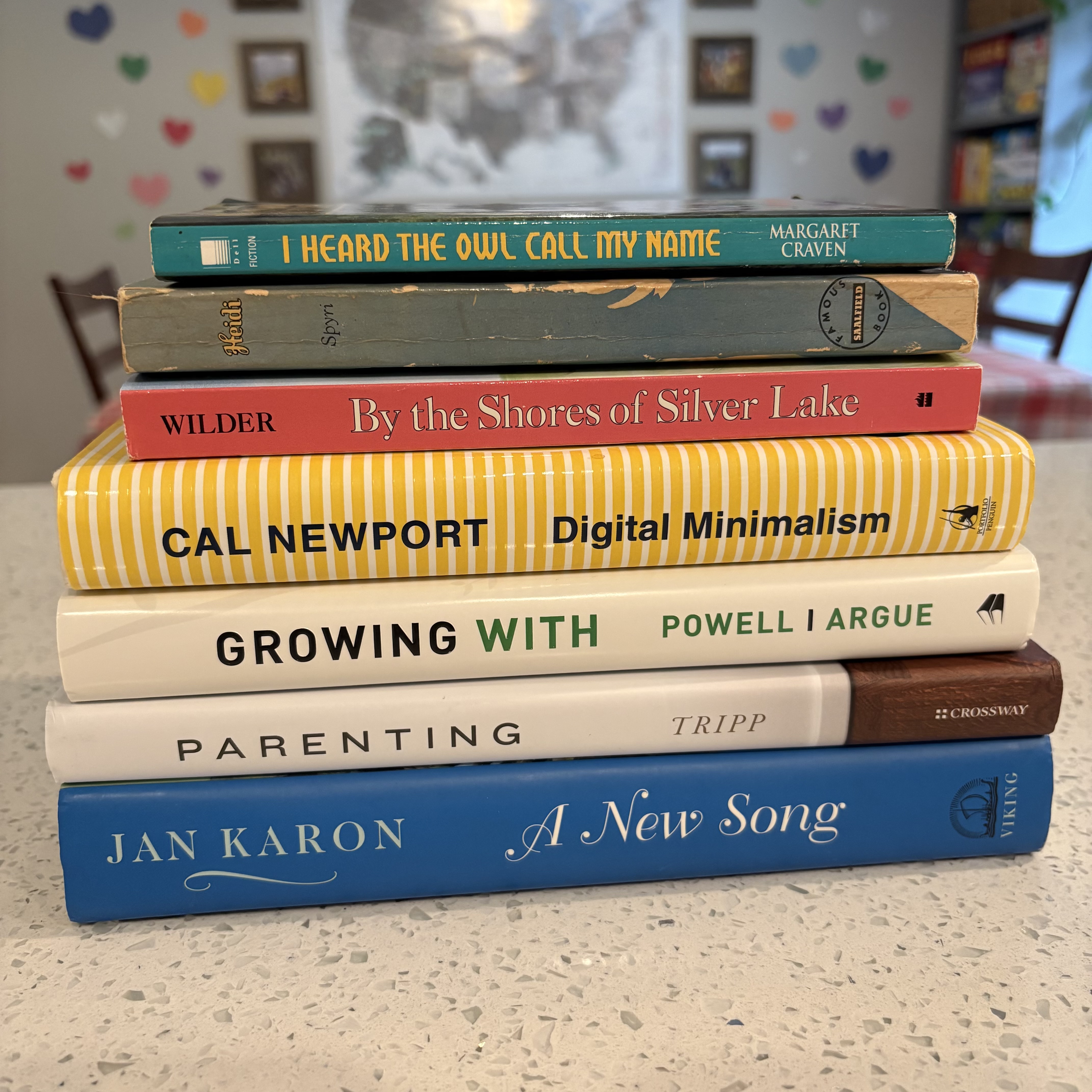 February might be a short month, but it’s been an excellent bookish month! I’ve enjoyed acquiring a few more books for my home library. I ordered two parenting books after recommendations from a parenting conference at our church. I really enjoyed Parenting by Paul David Tripp and I look forward to diving into Growing With soon. My book club had a field trip this month – we went book shopping at Goodwill! I Heard the Owl Call My Name was my exciting find that day! I got By the Shores of Silver Lake at Powell’s. I love that store! The boys not only got their monthly books, but also a book from Powell’s. I love treating them to something special when we’re there. To keep the thrifting theme going, I’m expecting a small order from Thrift Books. It won’t arrive until next week, so I’ll have to highlight that in my March post. Yay for new books!