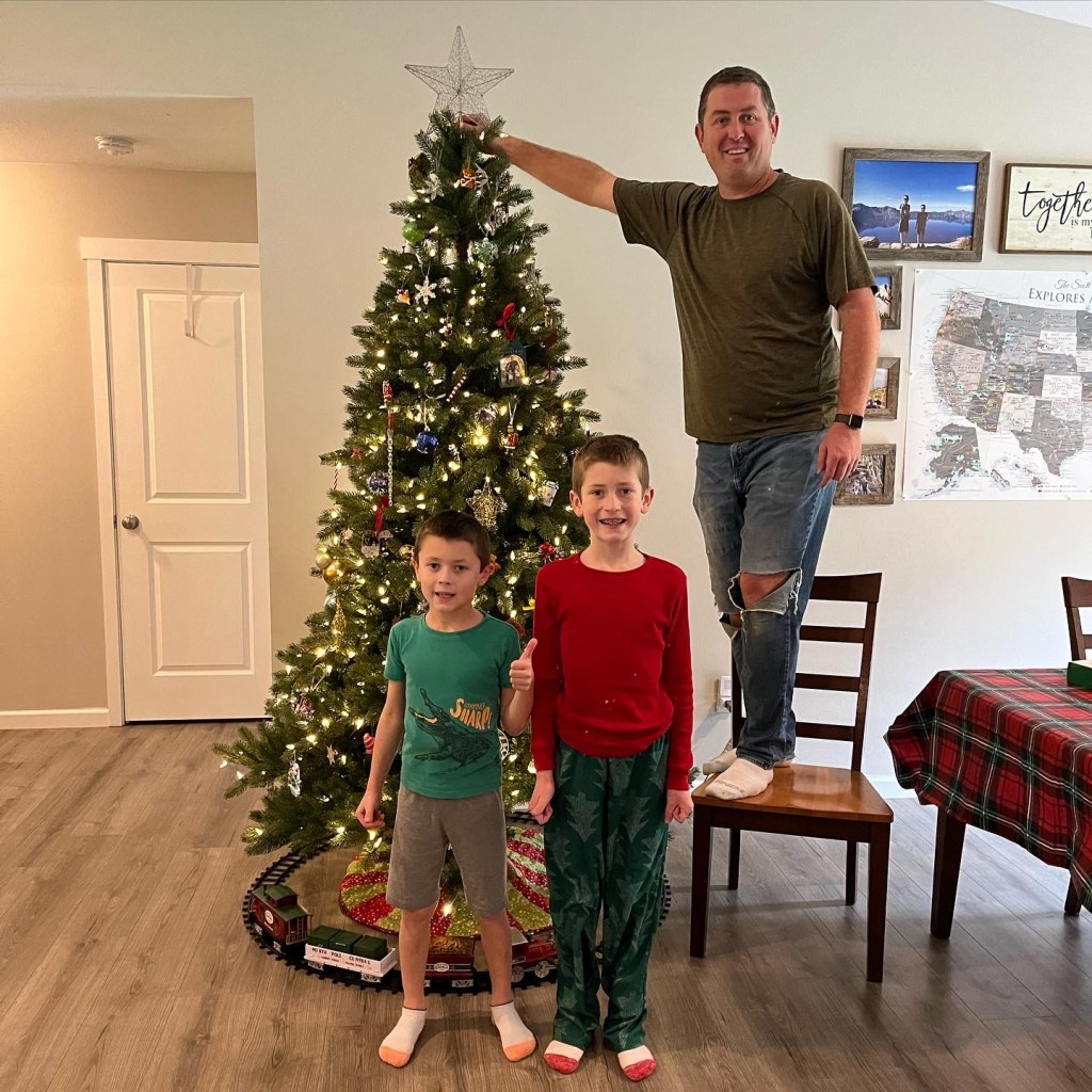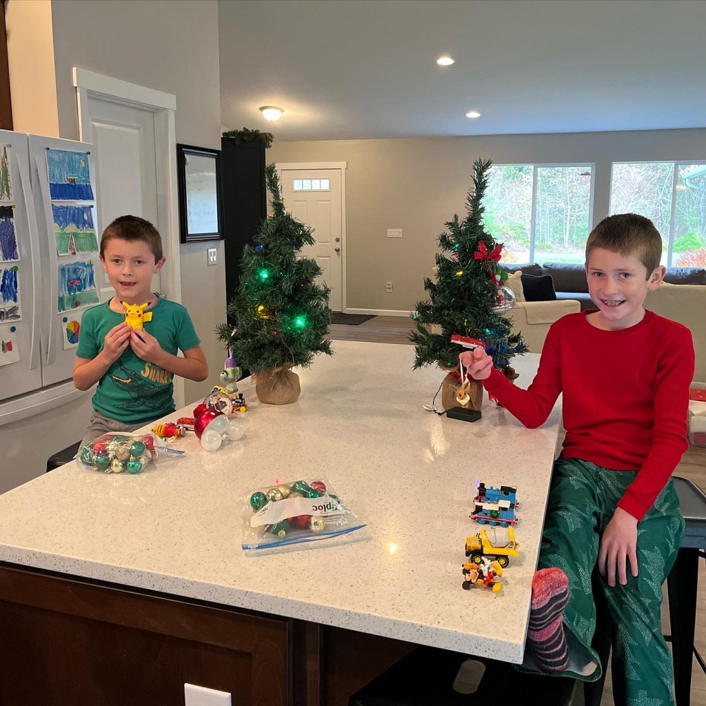Decorating their mini trees for their rooms. Each year they get a special ornament and this year it was Pokémon themed. Pikachu for Graham and Eevee for Owen.