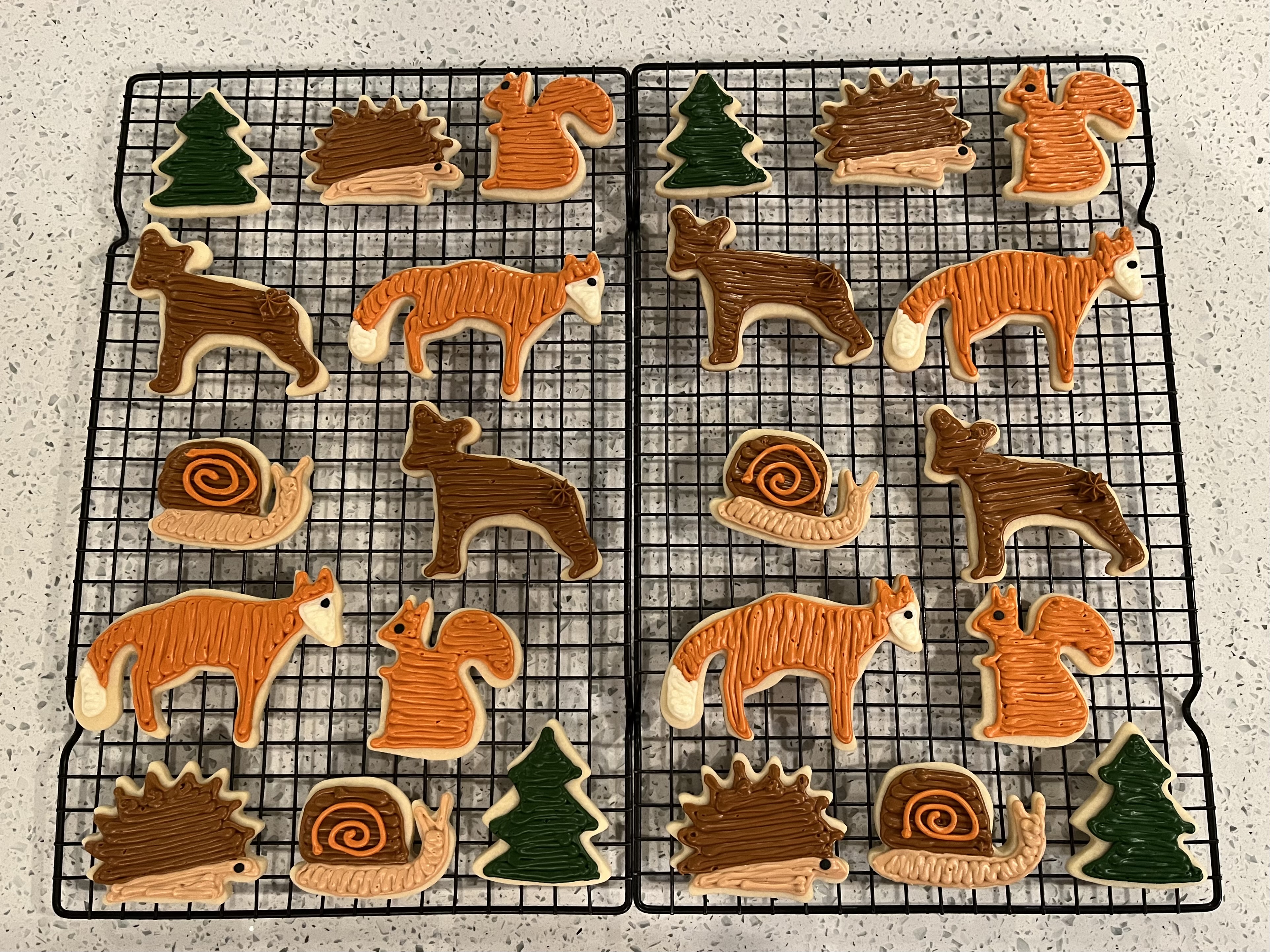 A third round of forest animal sugar cookies. This time for a family baby shower. I wasn’t able to attend, but it was so sweet to visit with my aunt and grandma when they came to pick them up from my house.