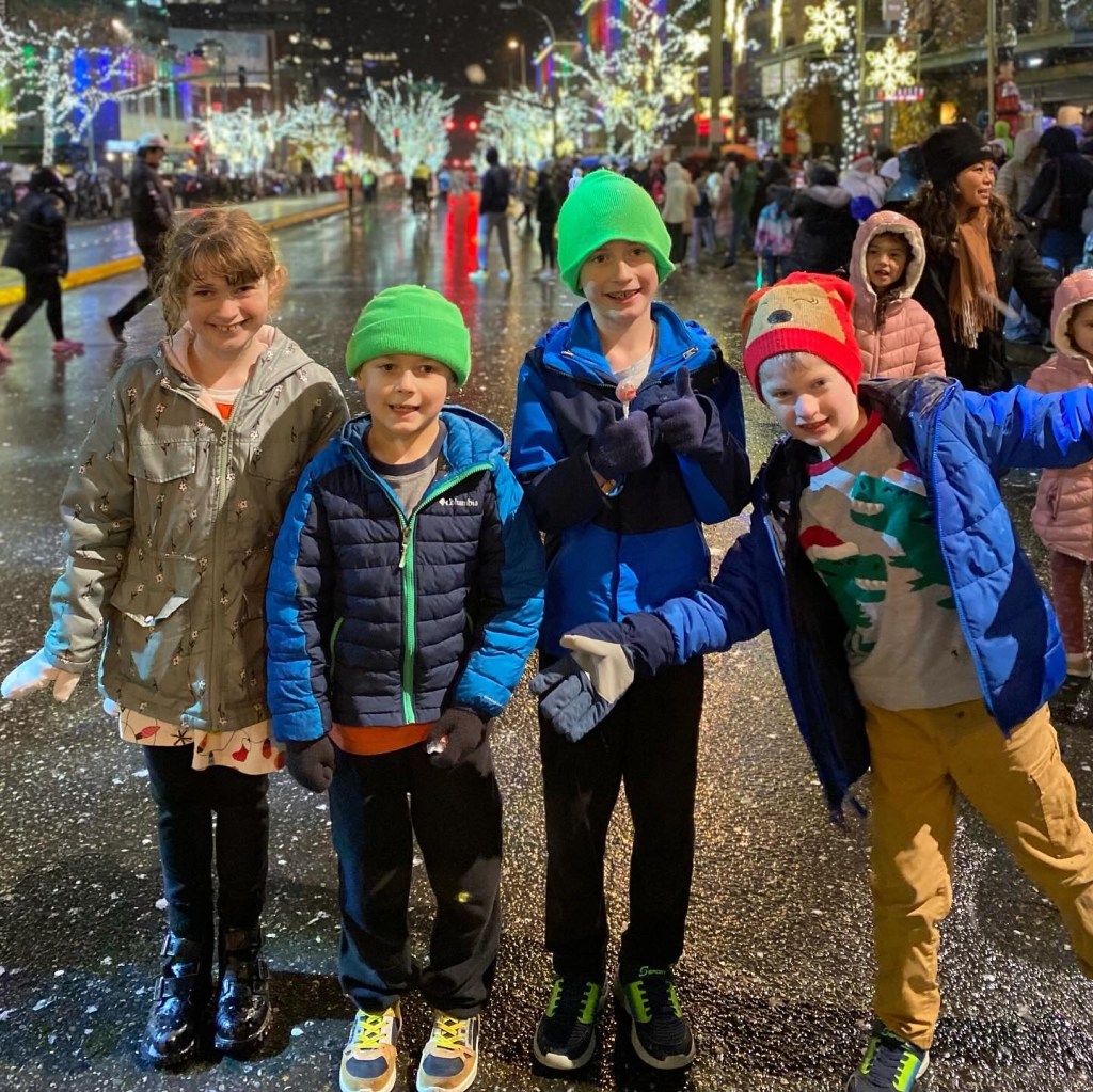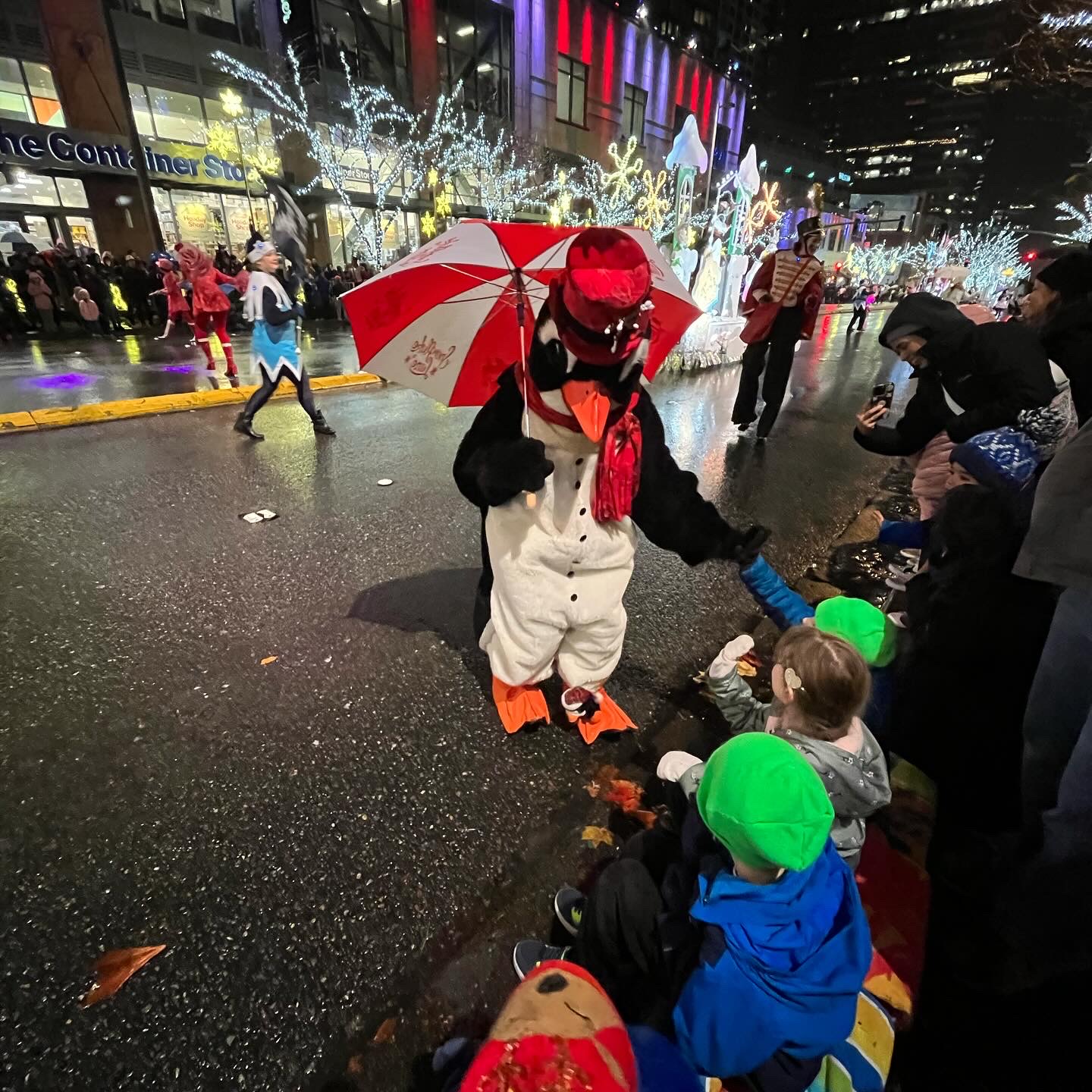 To kick off December, we joined my forever friend, Maggie, and her family for Snowflake Lane in Bellevue, WA. Snowflake Lane is a parade they put on nightly from the day after Thanksgiving through Christmas Eve. My favorite part is they make it snow as a part of the experience. The snow is really bubbles, but it’s still magical! This was probably our wettest experience at Snowflake Lane, but the rain didn’t spoil the affect. We met up early for Starbuck treats and hung out inside before claiming our spot on the parade route. With Maggie’s family moving across the country soon, it was fun to do one more Snowflake Lane with them before they go.