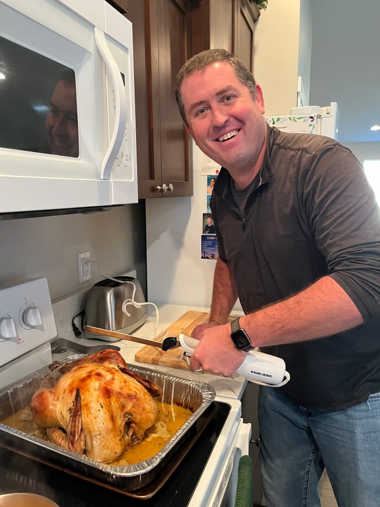 We are in full swing with the holiday season! So much goodness to share! My last update was right before Thanksgiving, so I’ll pick up there… even though Thanksgiving feels like forever ago now. Can anyone else relate? Our Thanksgiving was quieter than years past. Between illness and multiple family members recovering from surgery, our gatherings were small. We got together with Jeremy’s parents and aunt and uncle on Thanksgiving day. The day after Thanksgiving, we had another meal with my parents and sister. Since my dad wasn’t cleared for turkey lifting this year, Jeremy had the honor of making the turkey. He did a fantastic job! Jeremy was super domestic this Thanksgiving. He made multiple pies, side dishes, and a turkey. Jeremy is a great cook and he was the MVP (or MVC – most valuable cook) this Thanksgiving!