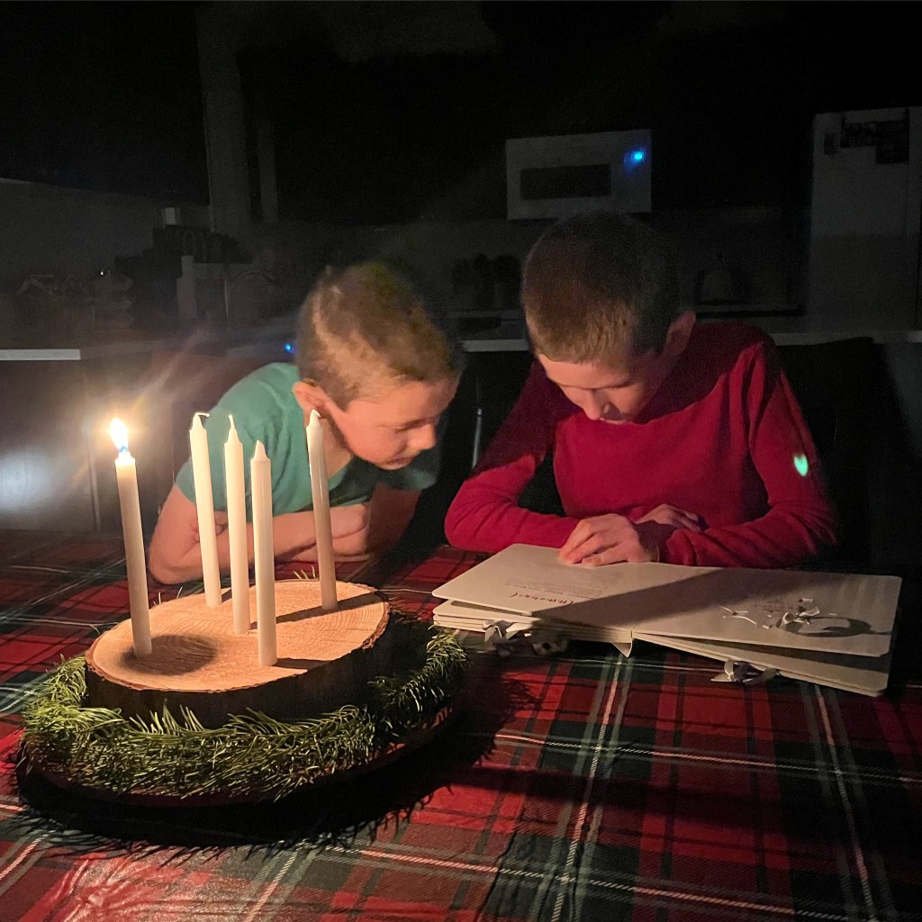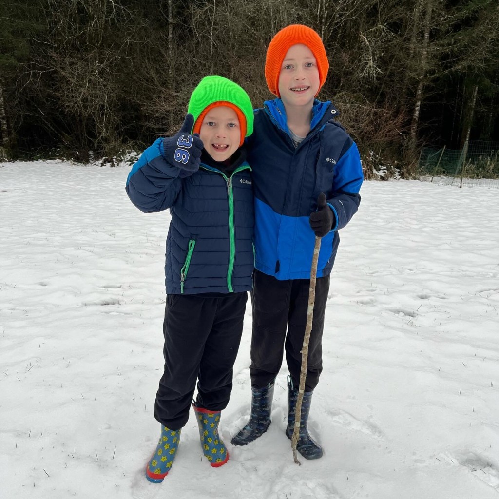 Things really started to freeze on Friday, so Jeremy pulled the boys on sleds up and down the driveway behind our minivan (until the sleds cracked due to too much gravel poking through – oops!). Saturday, we took a freezing walk to our local beaver dam only to come home to no power! With the high that day being 21F, we were a little nervous about being without power. Jeremy fired up our generator and we were able to make a hot dinner using our Instant Pot and electric kettle. After we got dinner cleaned up as best we could, the power came back on! Thankfully, it was only out for a couple hours so the house didn’t have time to get too cold.